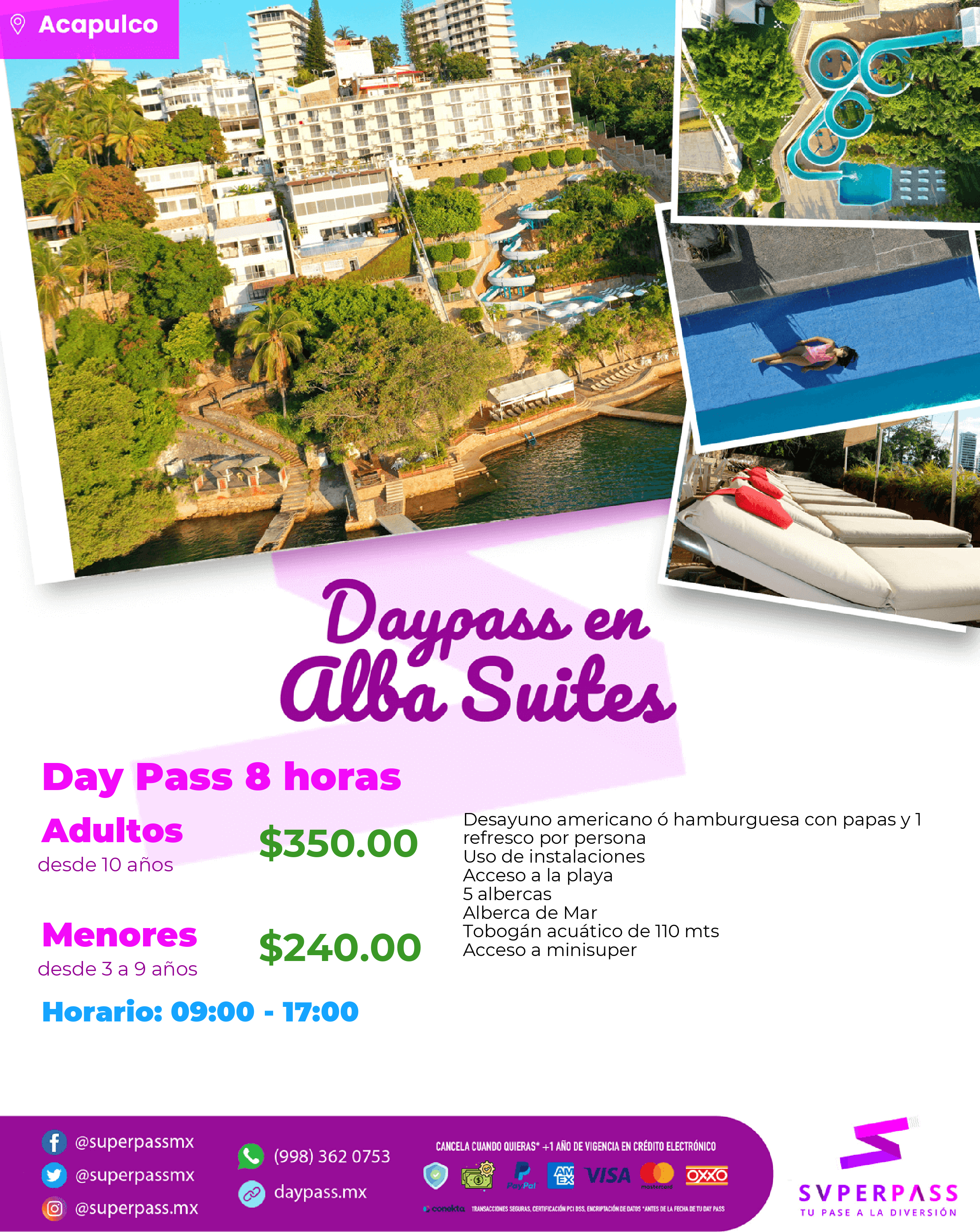 - Horario del daypass: 09:00 - 17:00