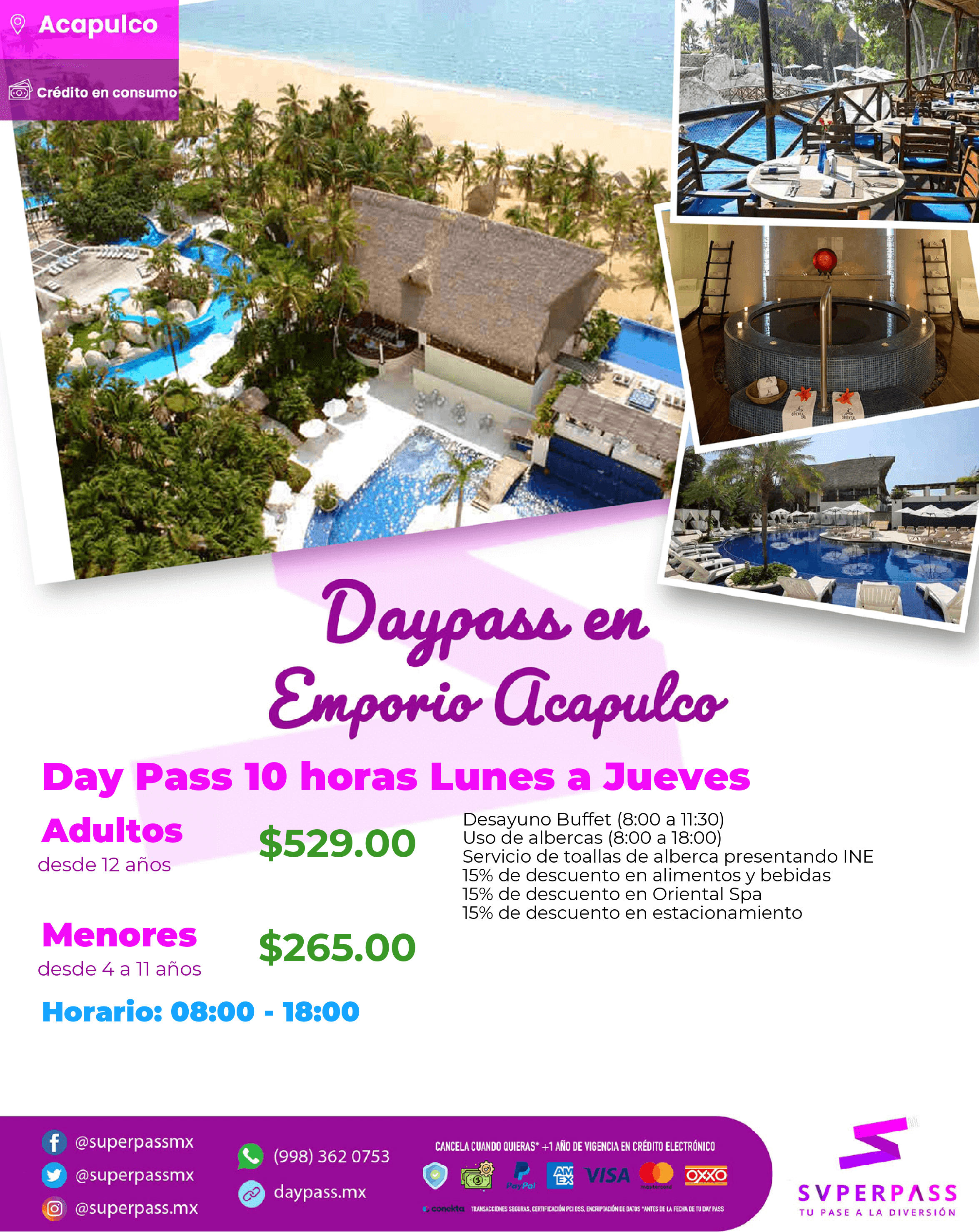 Daypass disponible de Lunes a Jueves