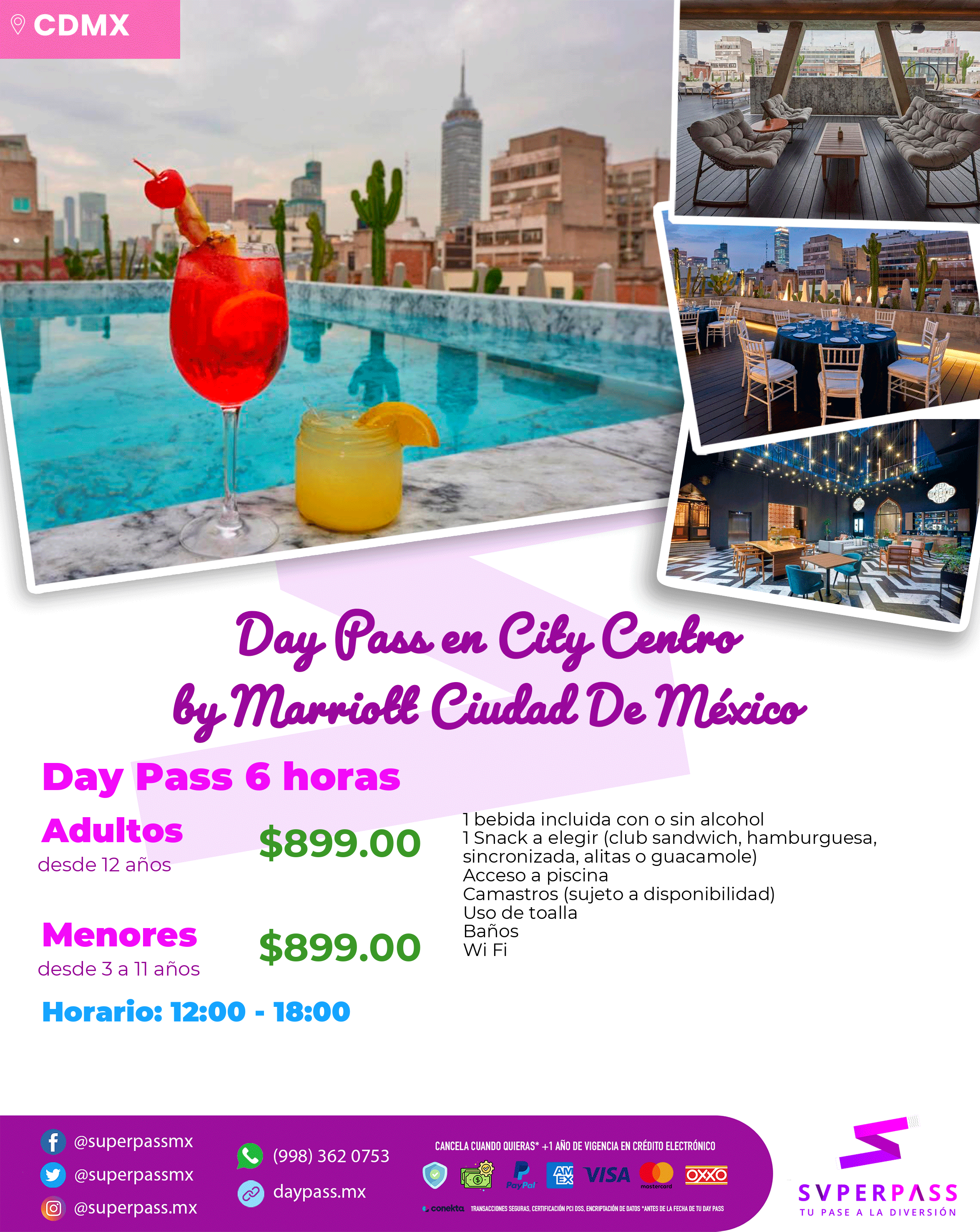- El daypass NO incluye : No se pueden modificar los platillos y/o bebidas del paquete, ni intercambiar por otro producto o servicio.No incluye acceso a regaderas. No aplica en otras promociones. Estacionamiento