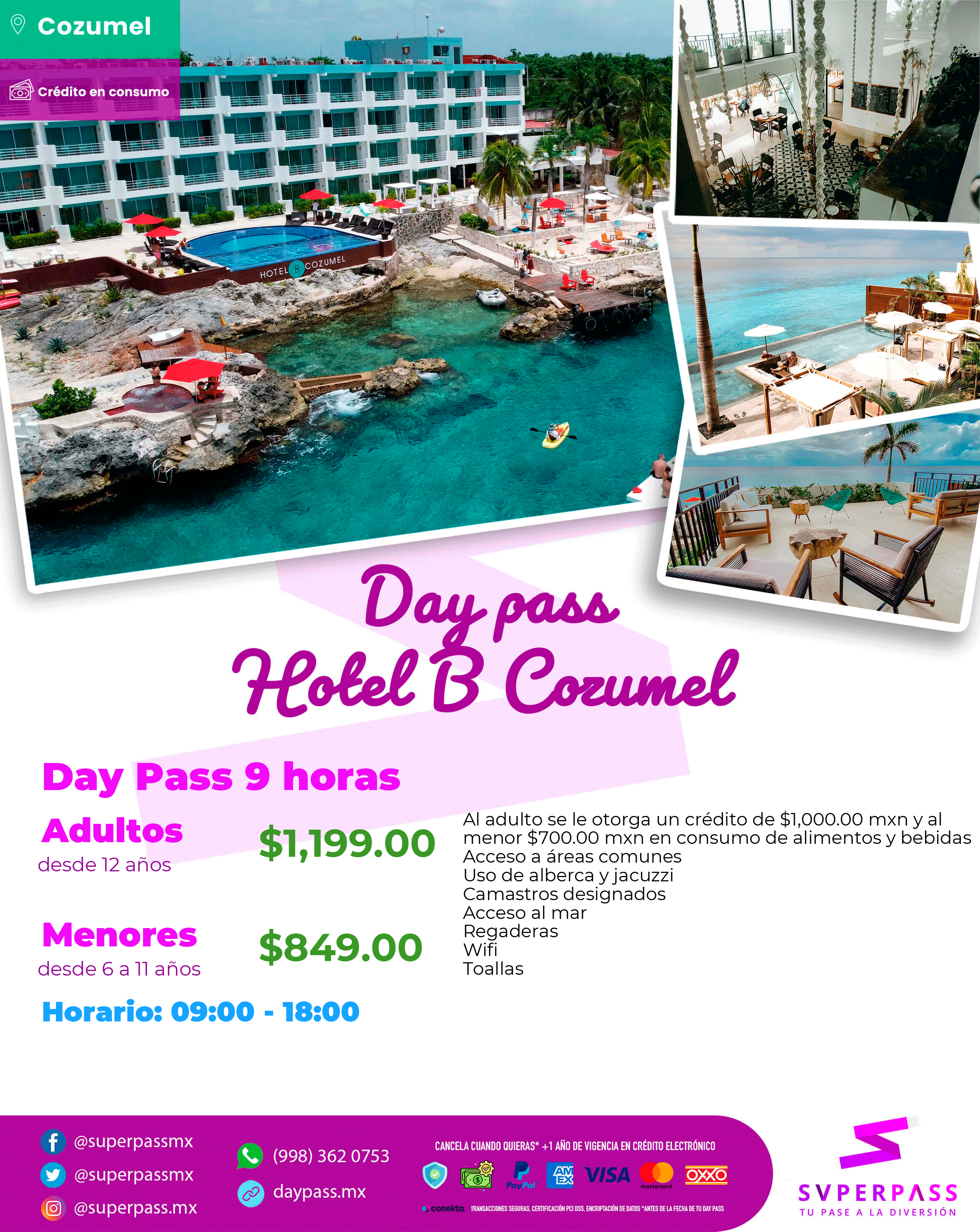 - Horario del daypass: 09:00 - 18:00