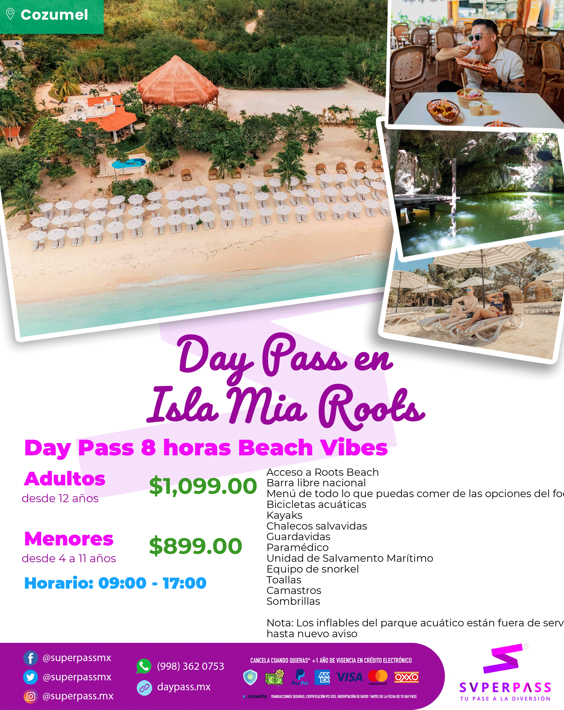 - El daypass NO incluye : Bebidas de alta gama. Artesanías Mexicanas Hechas a Mano Paquete de fotos Camas tipo Nido