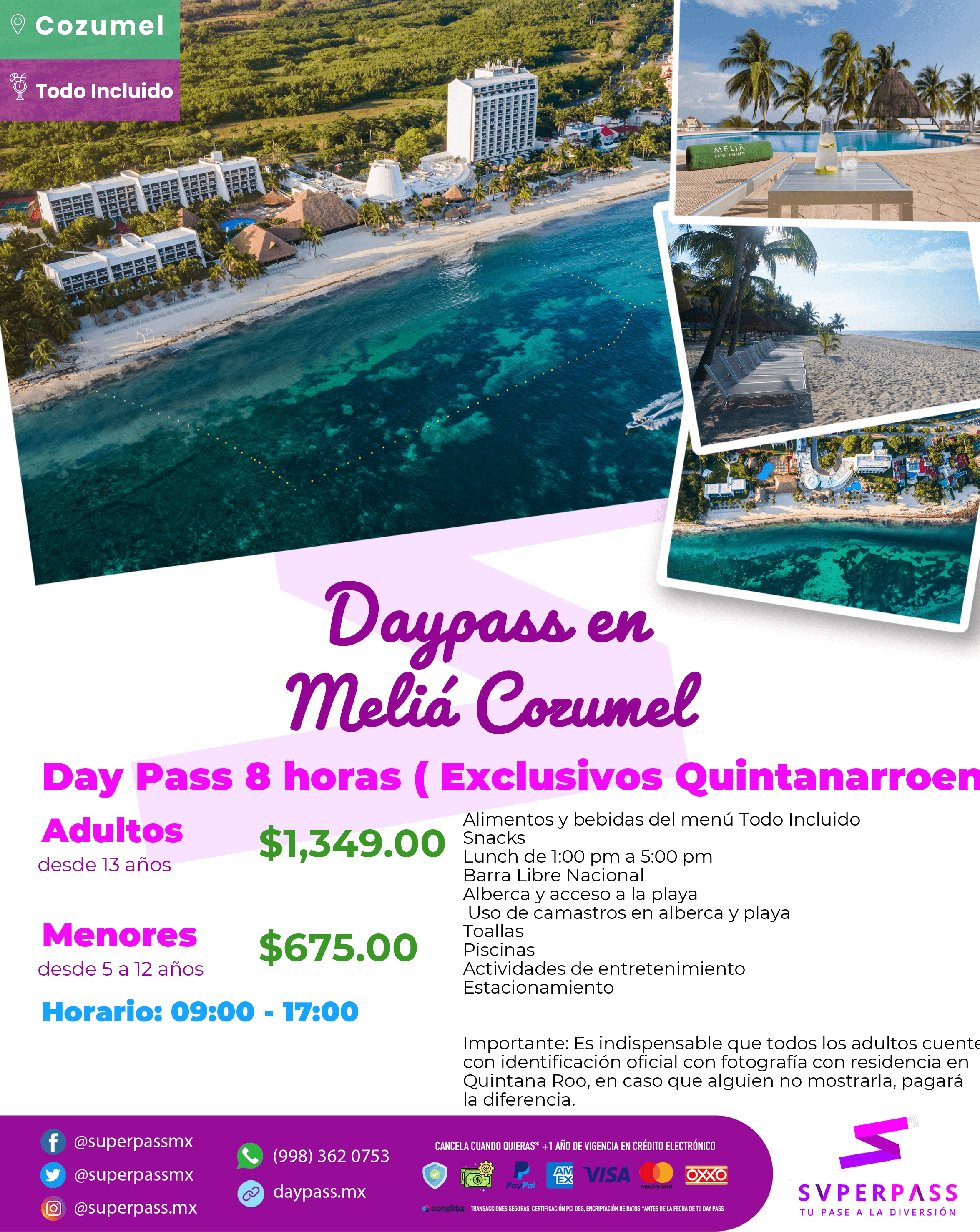 - El daypass NO incluye : Restaurantes a la carta, habitación