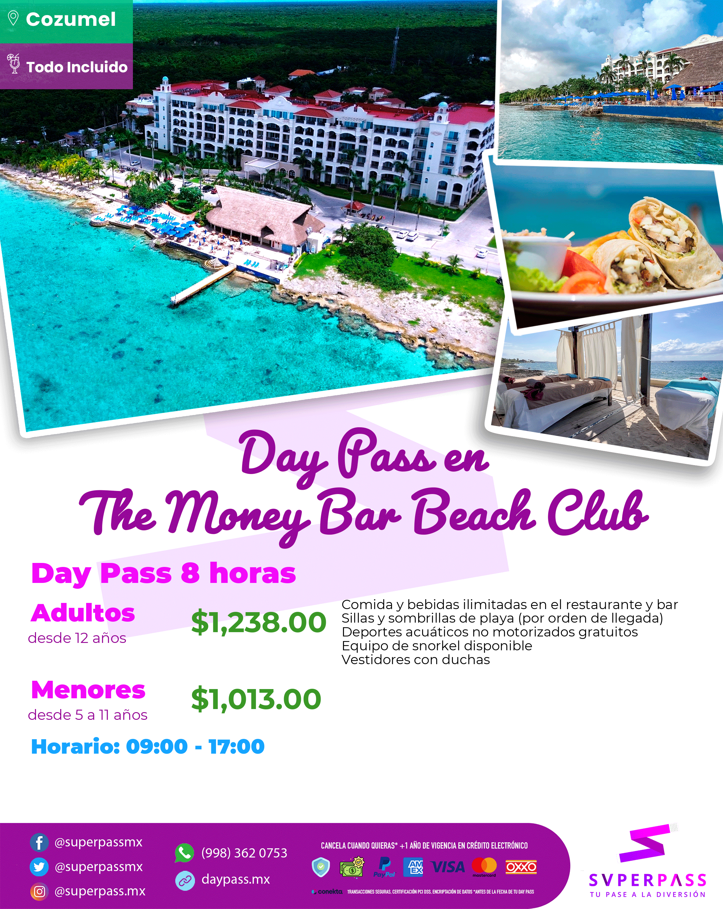 - Horario del daypass: 09:00 - 17:00