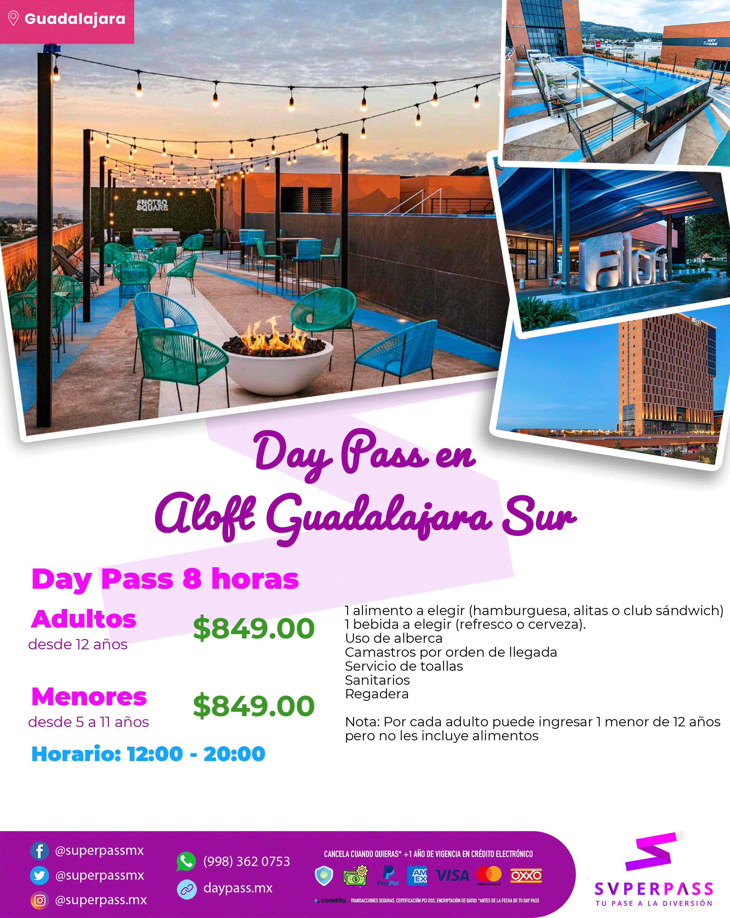 - Horario del daypass: 12:00 - 20:00