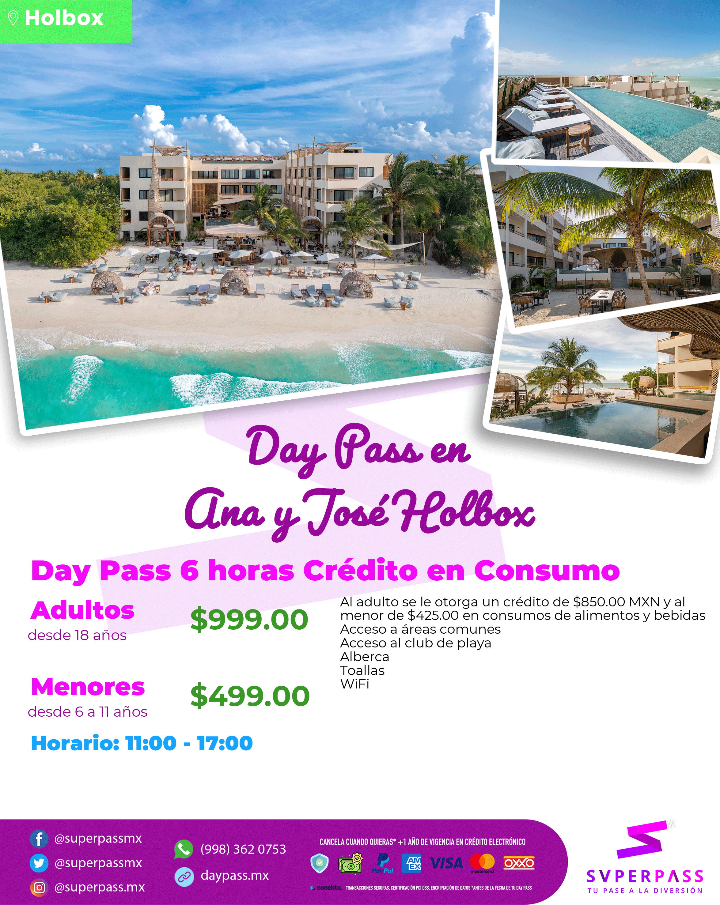 - El daypass NO incluye : Habitación, propina, Spa, algún otro servicio no mencionado