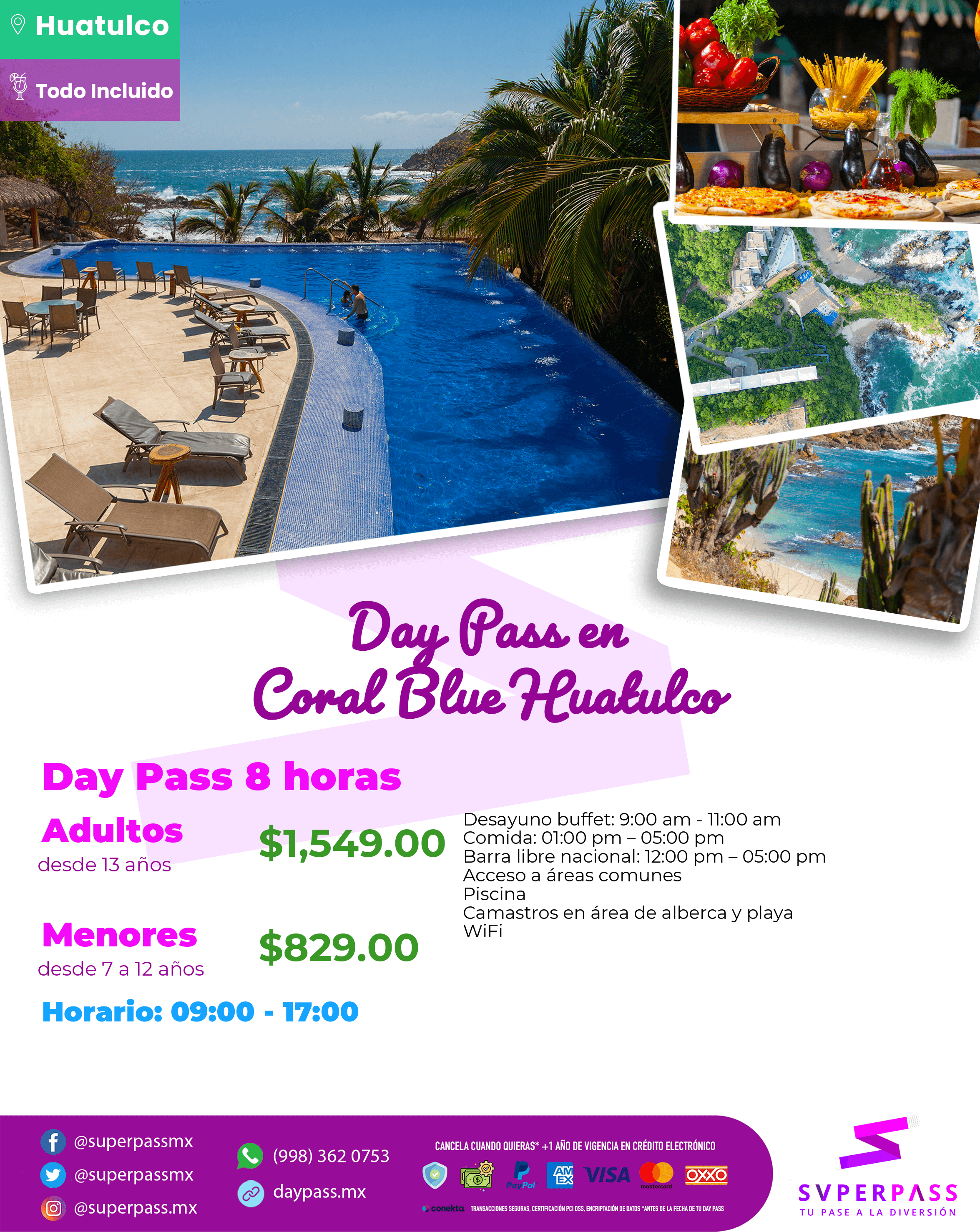 - Horario del daypass: 09:00 - 17:00