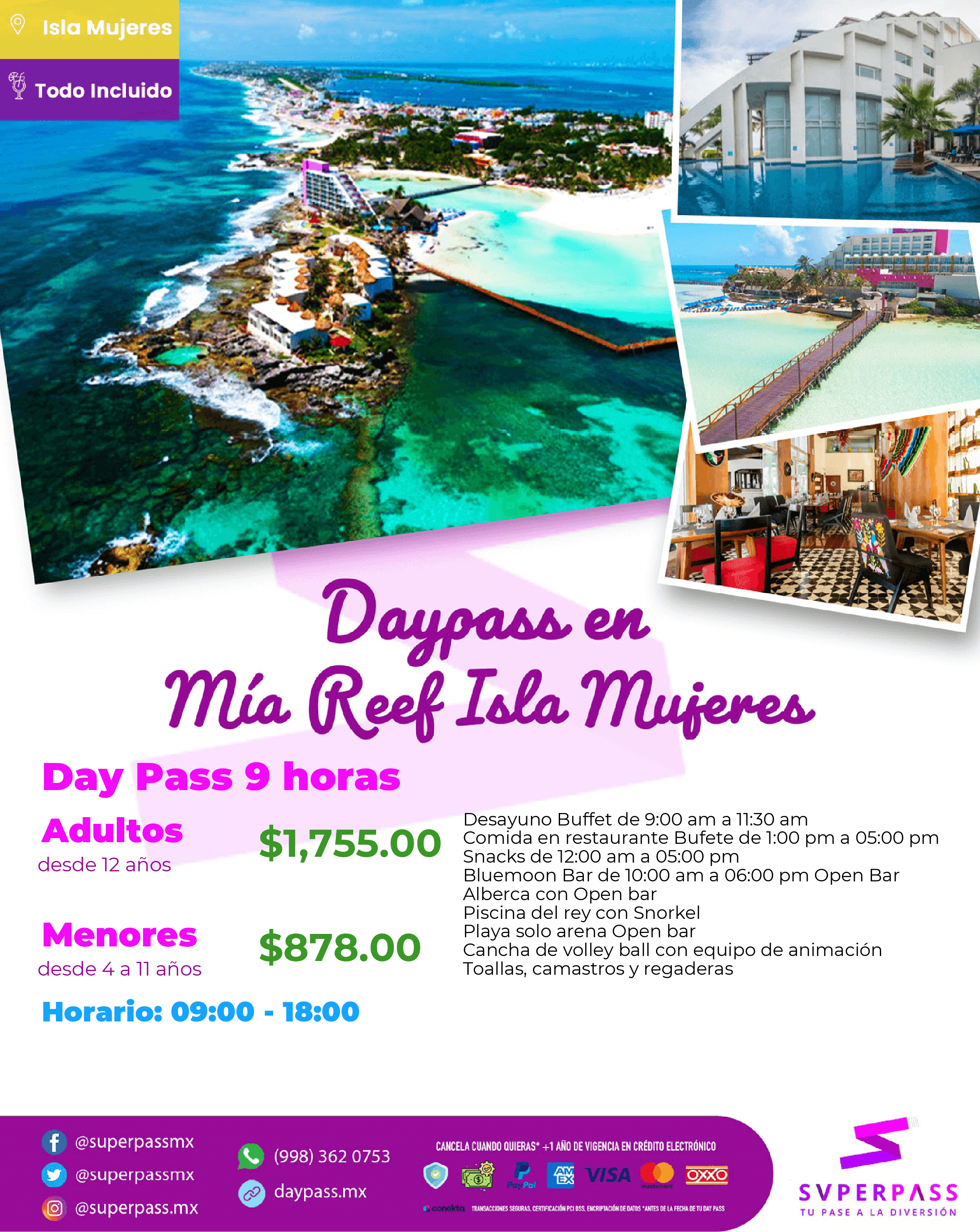 - Horario del daypass: 09:00 - 18:00