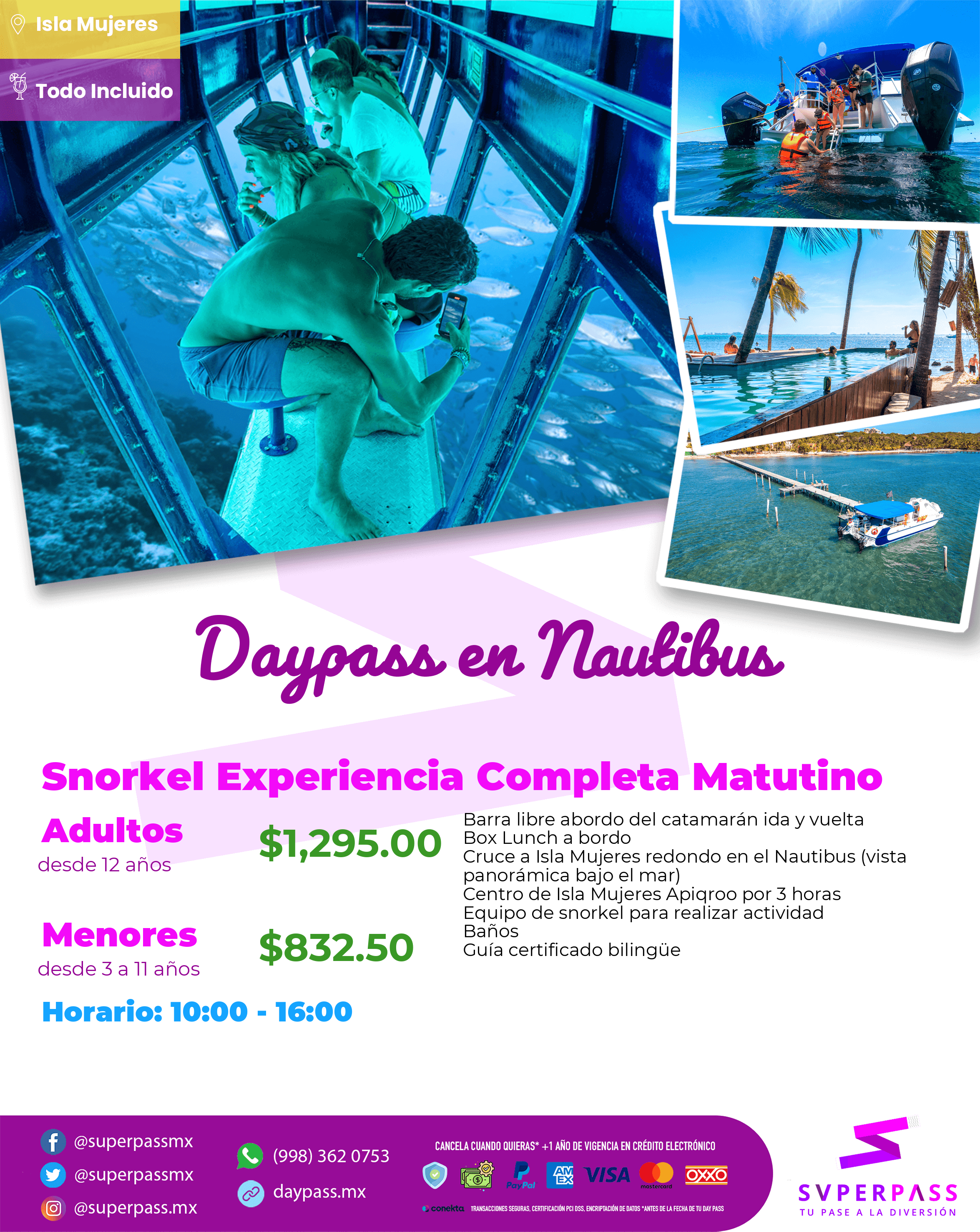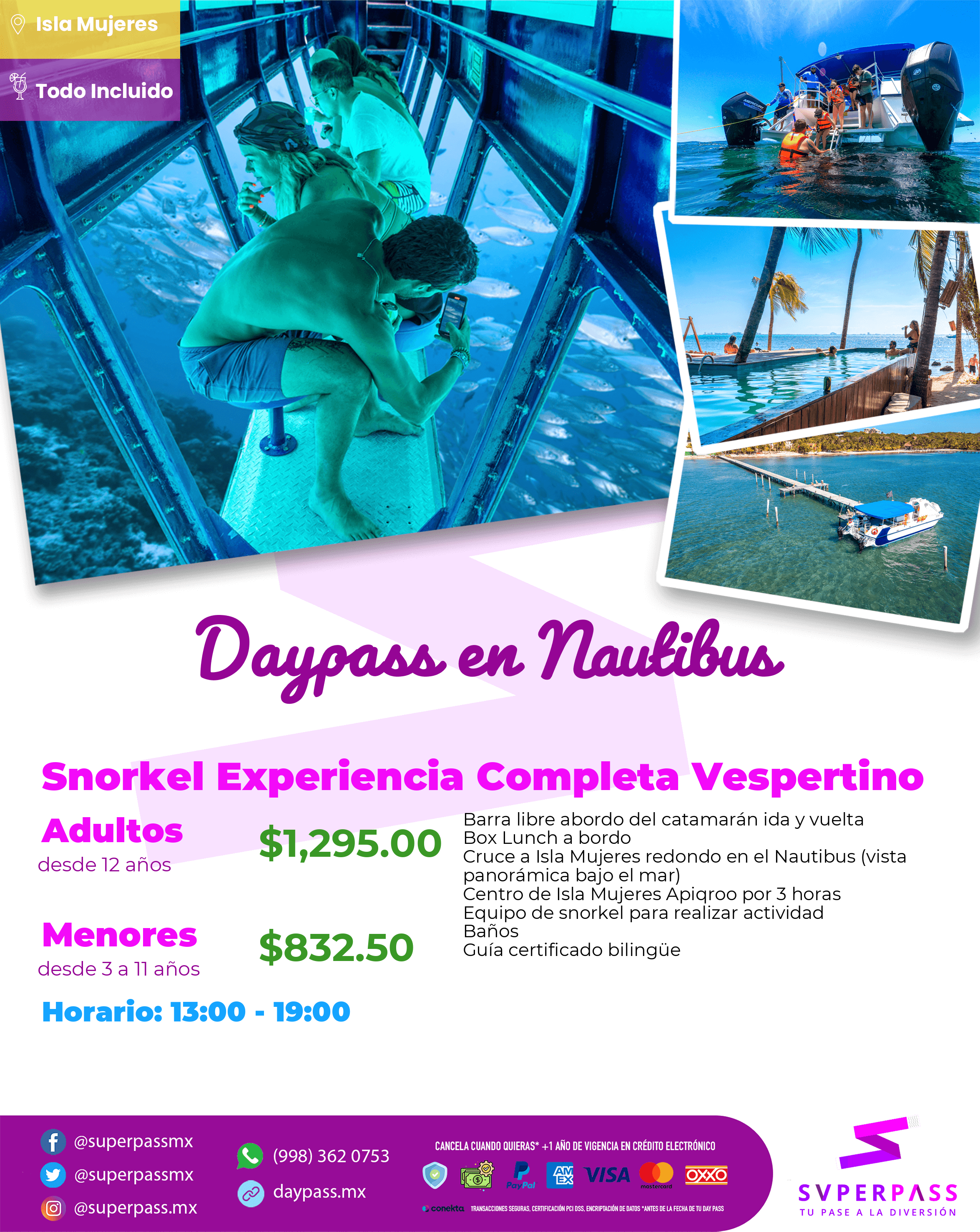 - El daypass NO incluye : impuesto de muelle $20 usd (aprox $400.00 mxn)