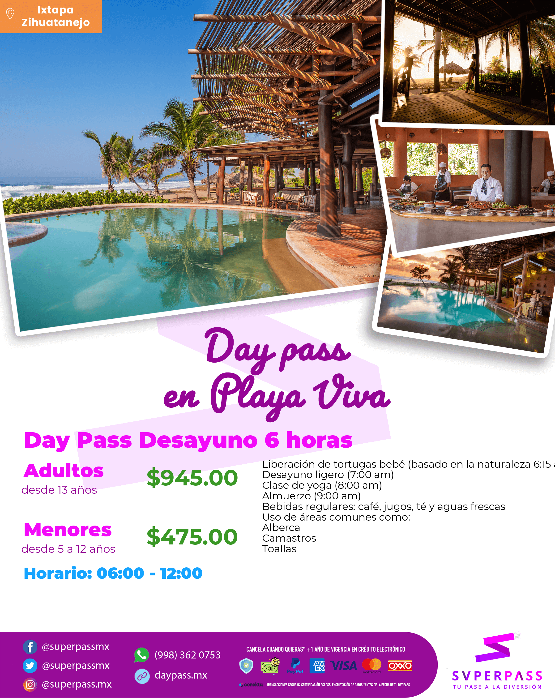 - Horario del daypass: 06:00 - 17:00