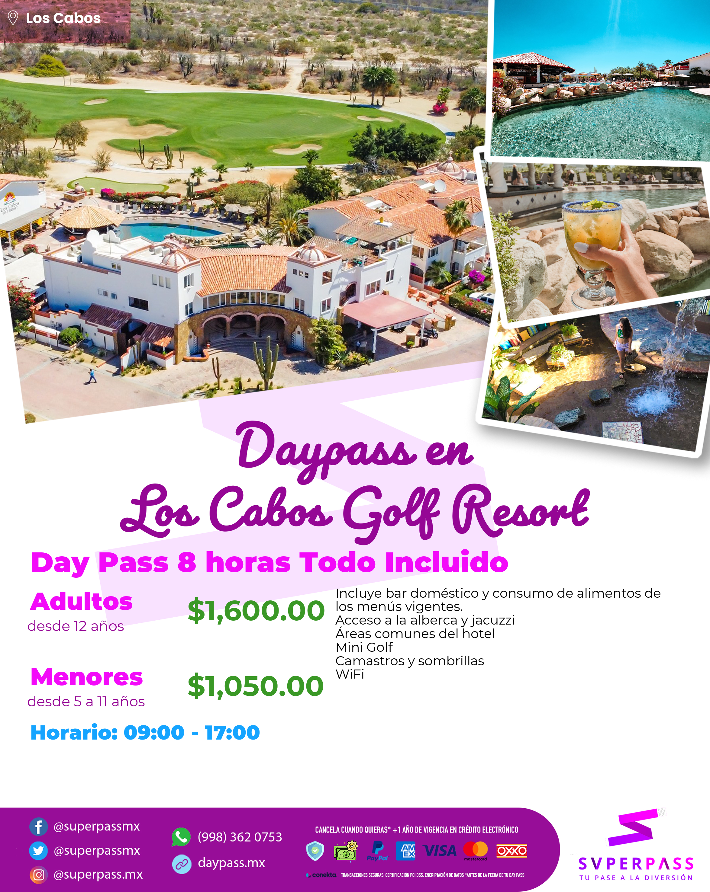 - Horario del daypass: 09:00 - 17:00