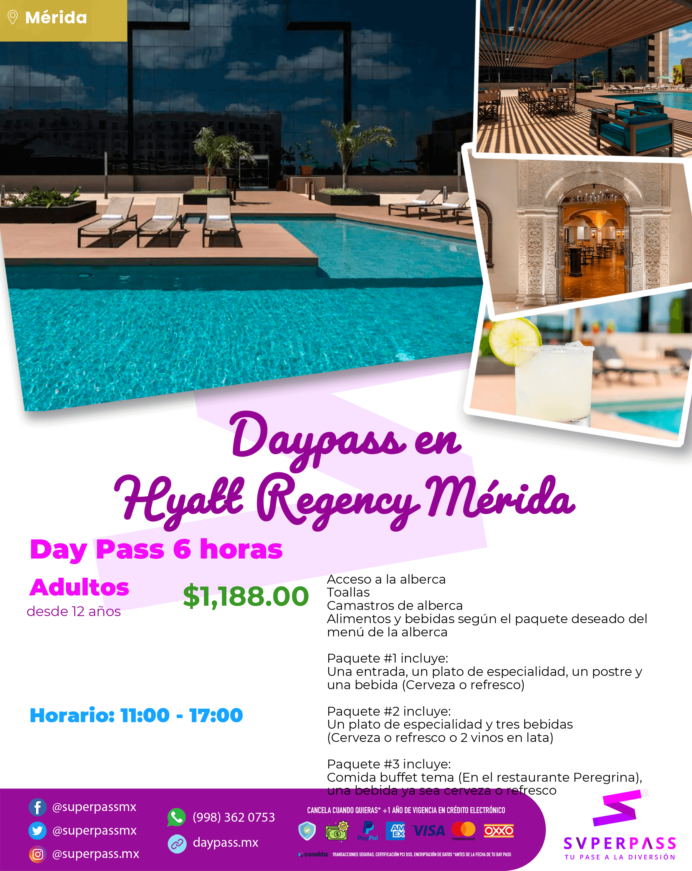 - Horario del daypass: 11:00 - 17:00