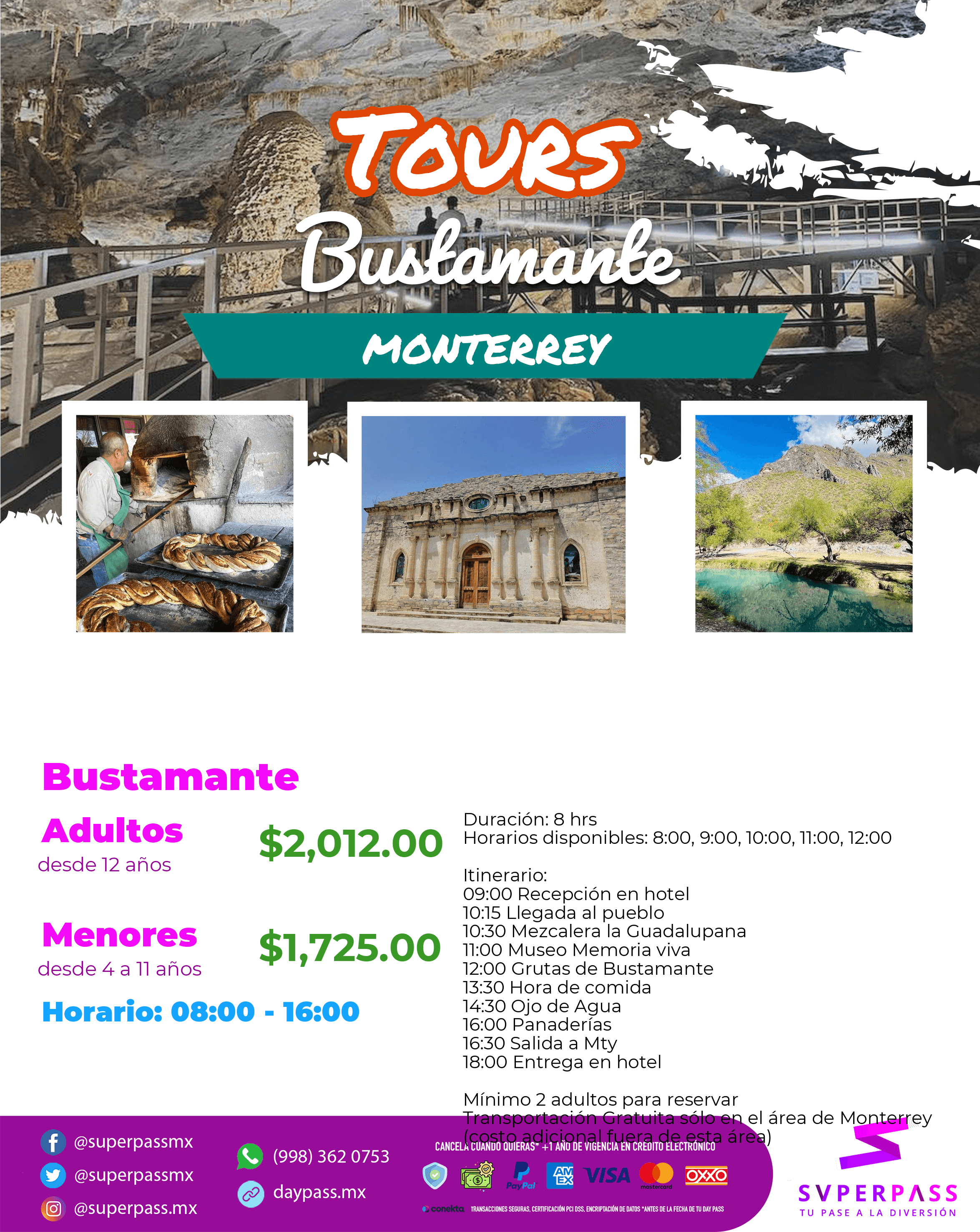 Adultos (Desde 12años )Precio : $2,012.00 MXNMenores con costo (Desde 4años / hasta 11 años )Precio : $1,725.00 MXNMenores sin costo (Desde 0años / hasta 3 años )Precio : SIN COSTO