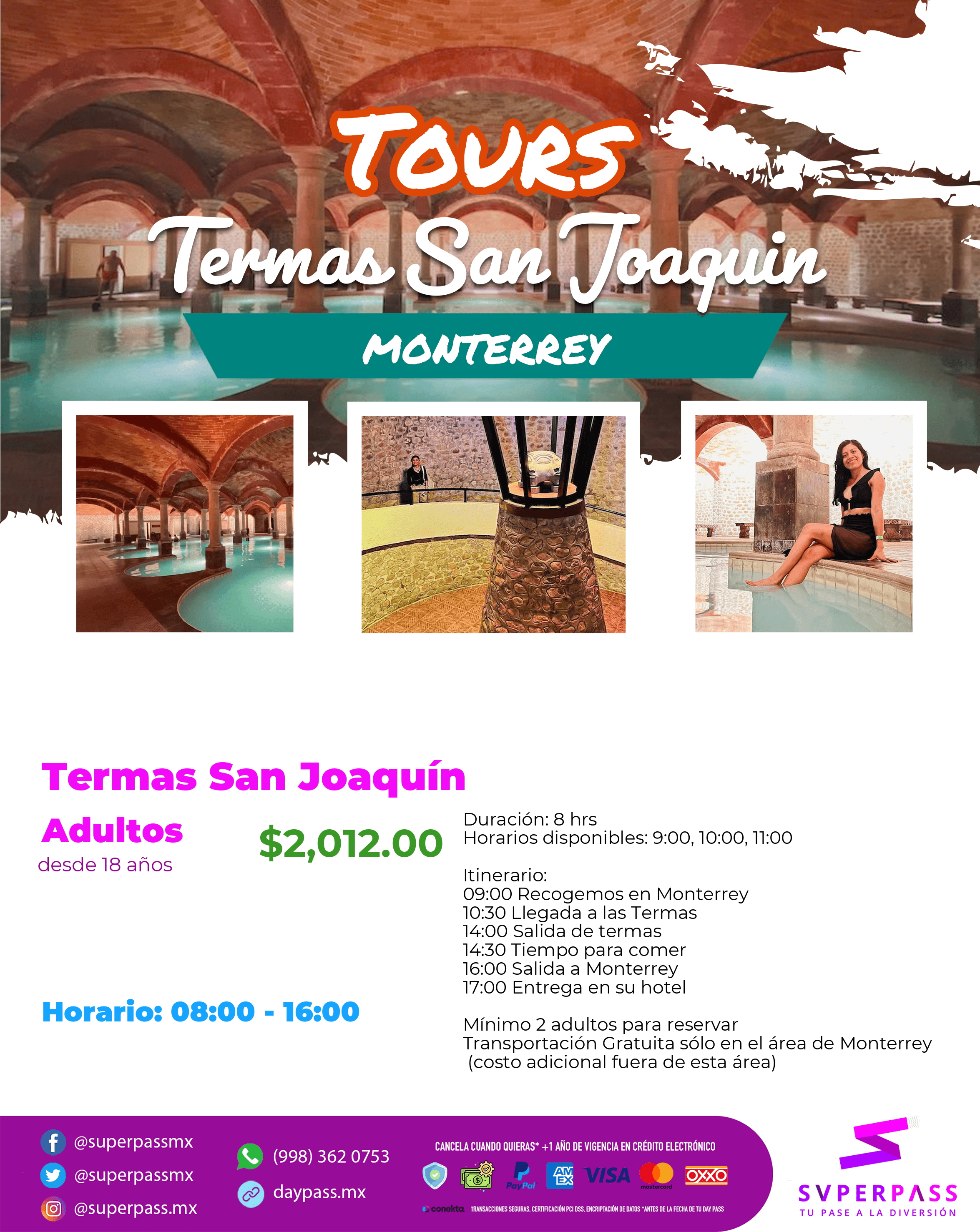 - Horario del daypass: 08:00 - 16:00