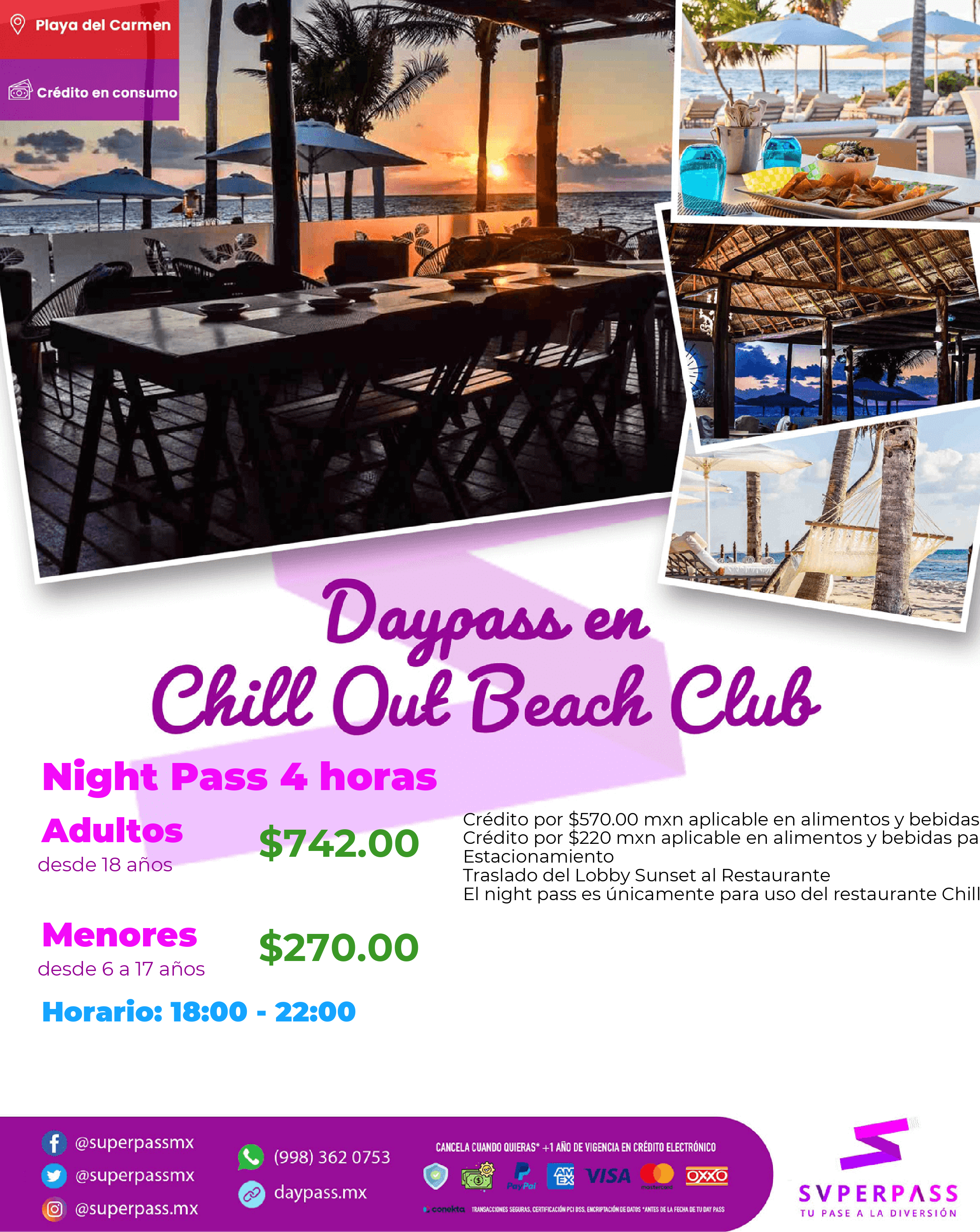 El day pass es únicamente para uso del Chill Out Beach Club,