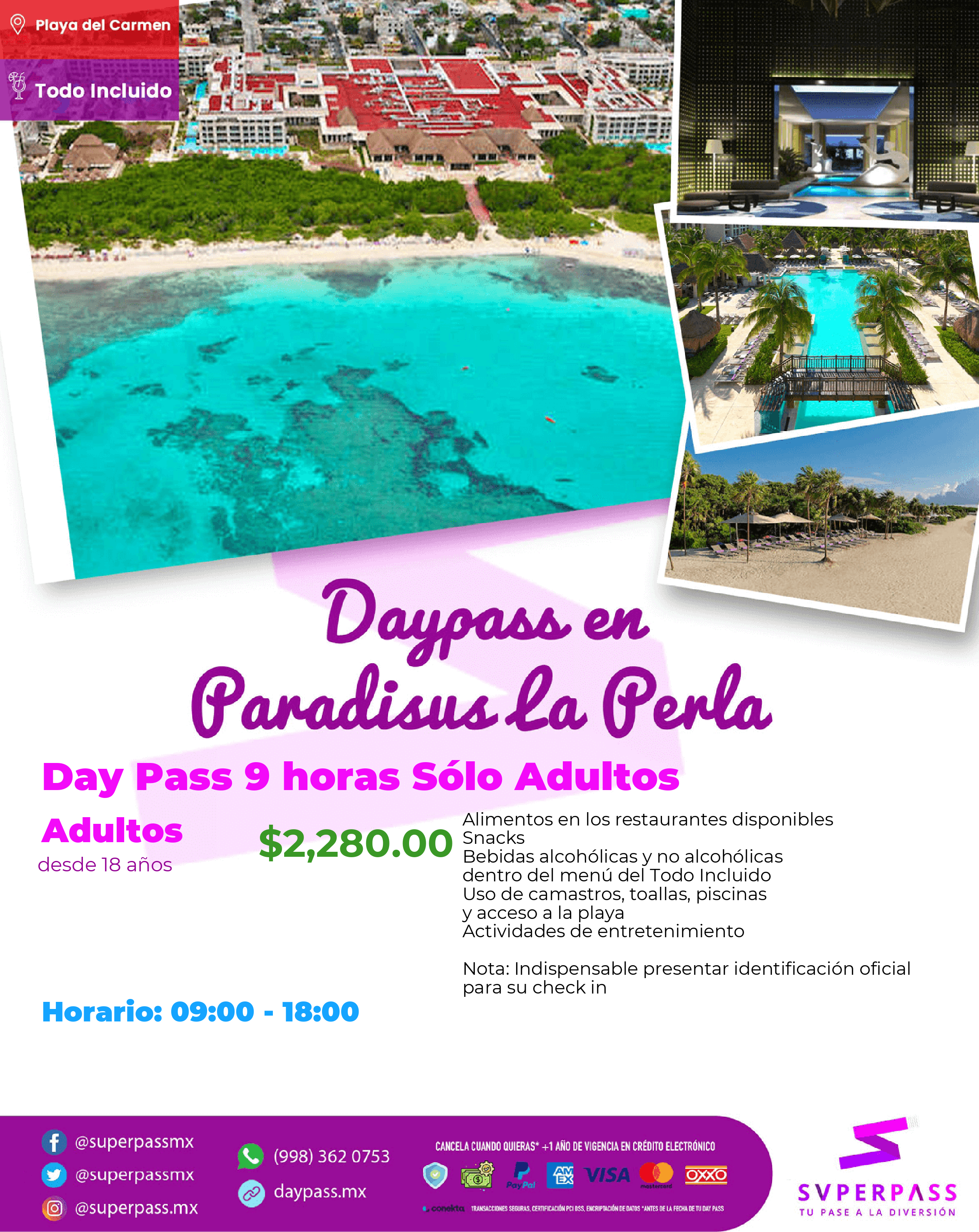 - El daypass NO incluye : Servicios no incluidos en el daypass Estancia en habitaciones Servicio de salón de belleza Productos como langosta, cortes finos y bebidas premium