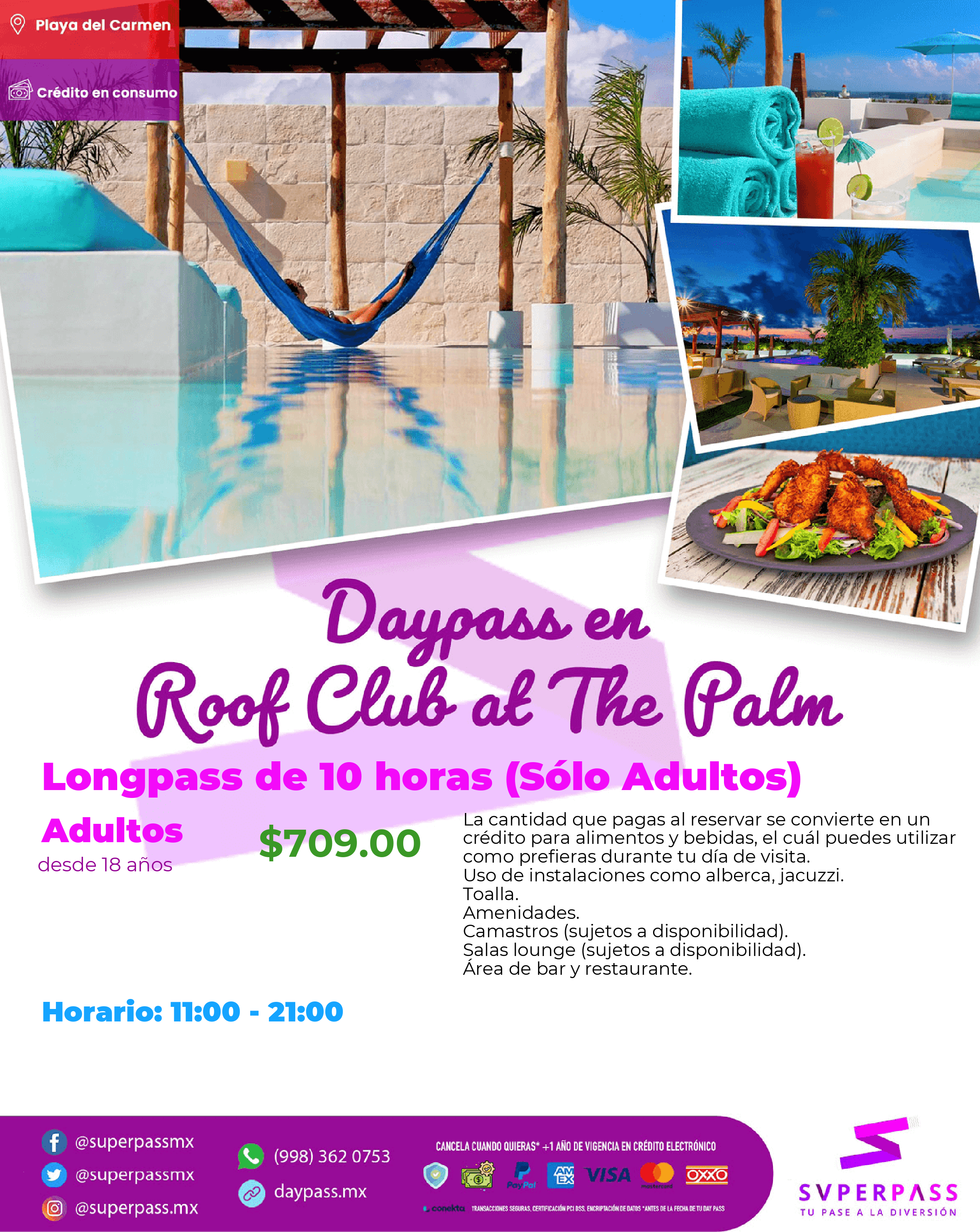 - Horario del daypass: 11:00 - 21:00