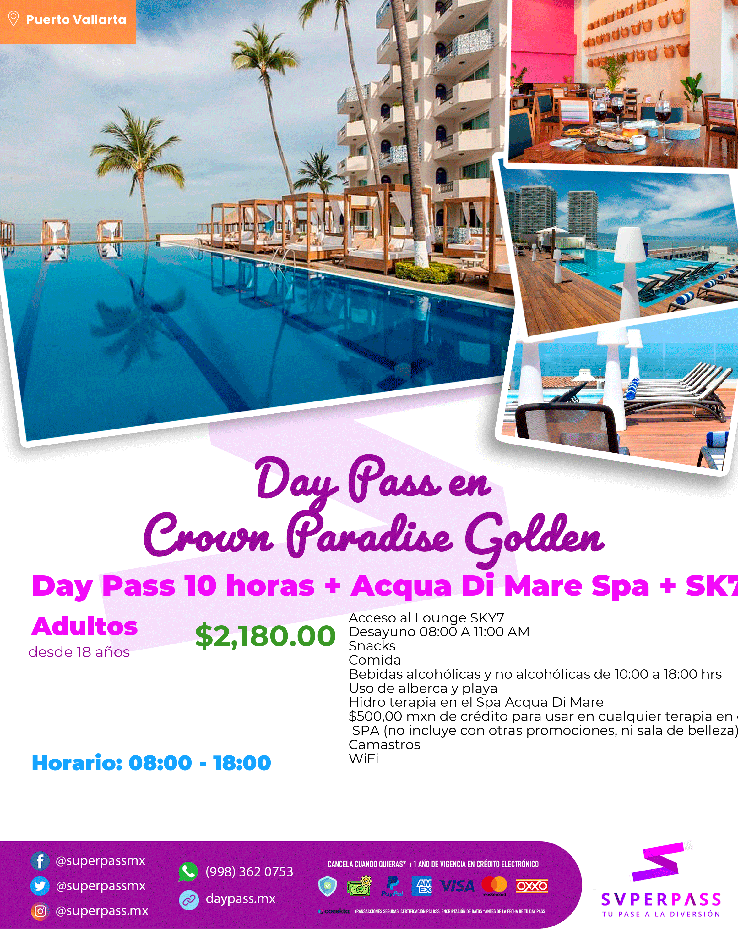 - El daypass NO incluye : No incluye Acceso a SKY7 LOUNGE No incluye boutiques No Incluye habitación Servicios de Spa