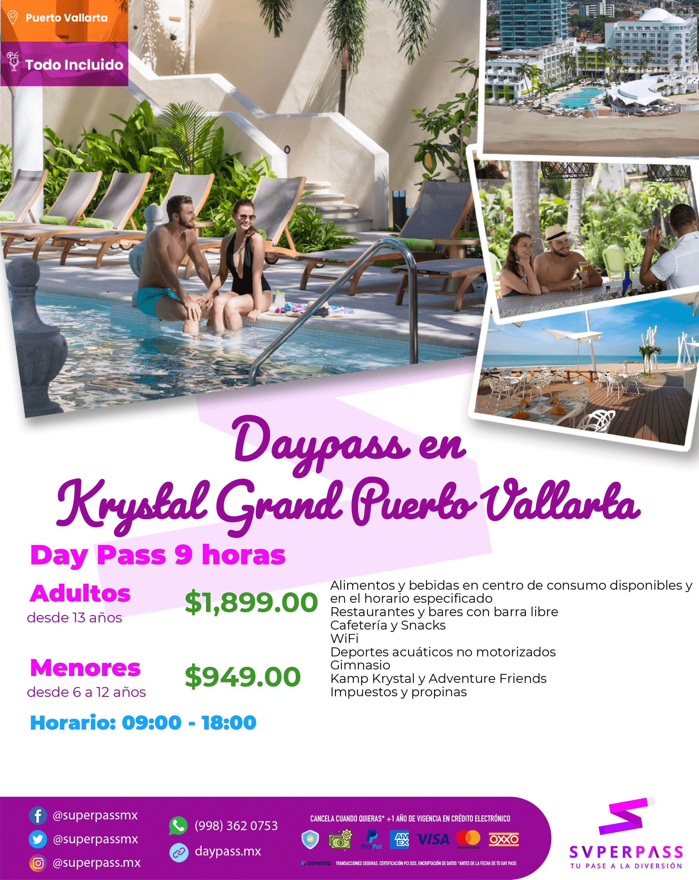- Horario del daypass: 09:00 - 18:00