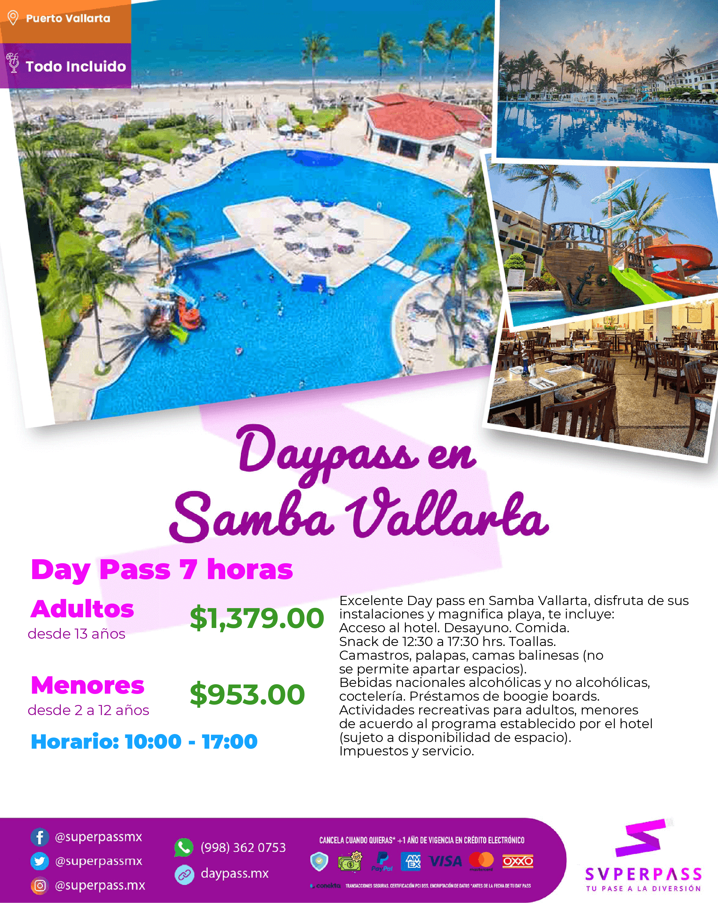 Excelente Day pass en Samba Vallarta, disfruta de sus instalaciones y magnifica playa, te incluye:
