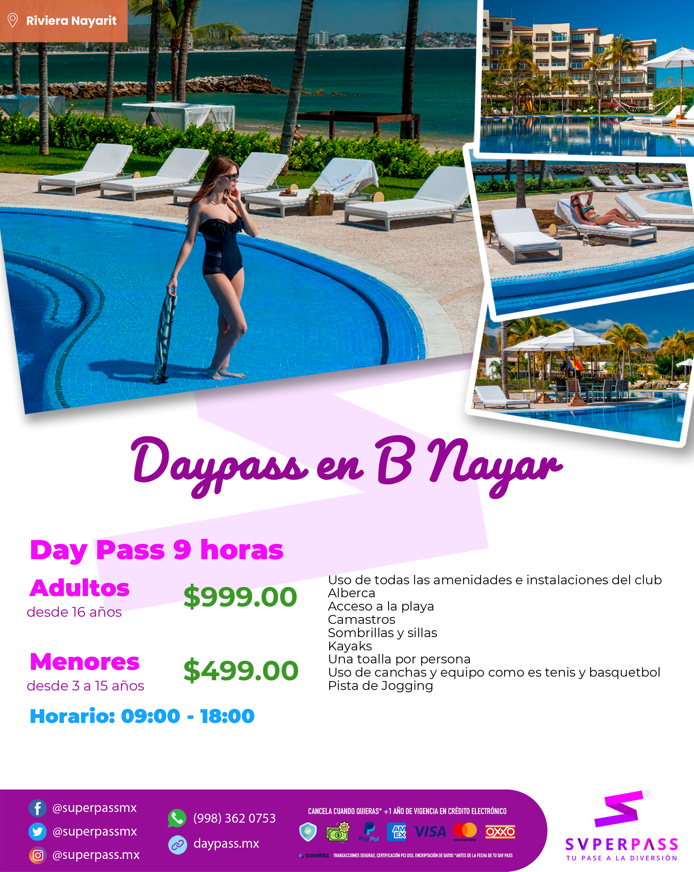 - Horario del daypass: 09:00 - 18:00