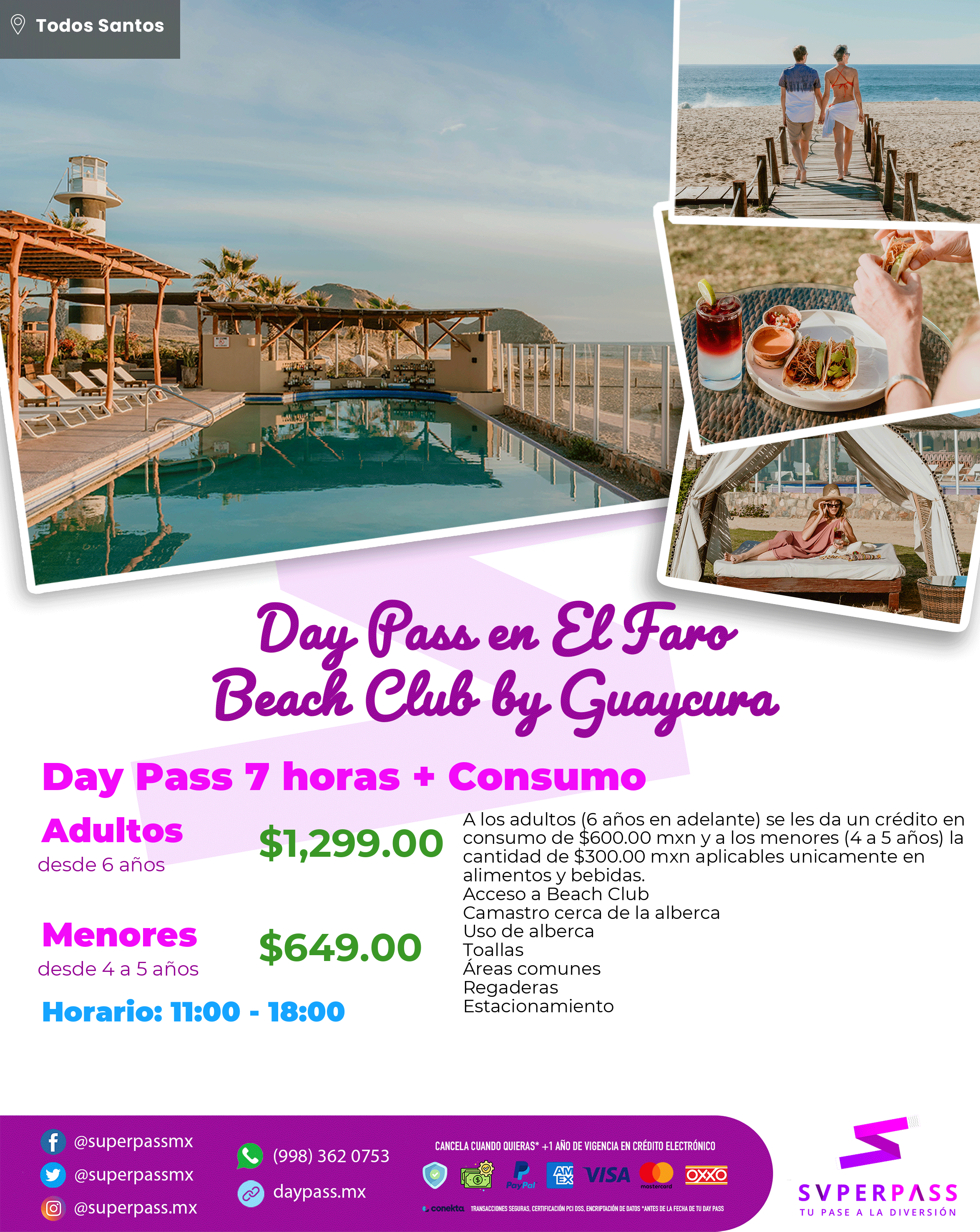 - Horario del daypass: 11:00 - 18:00