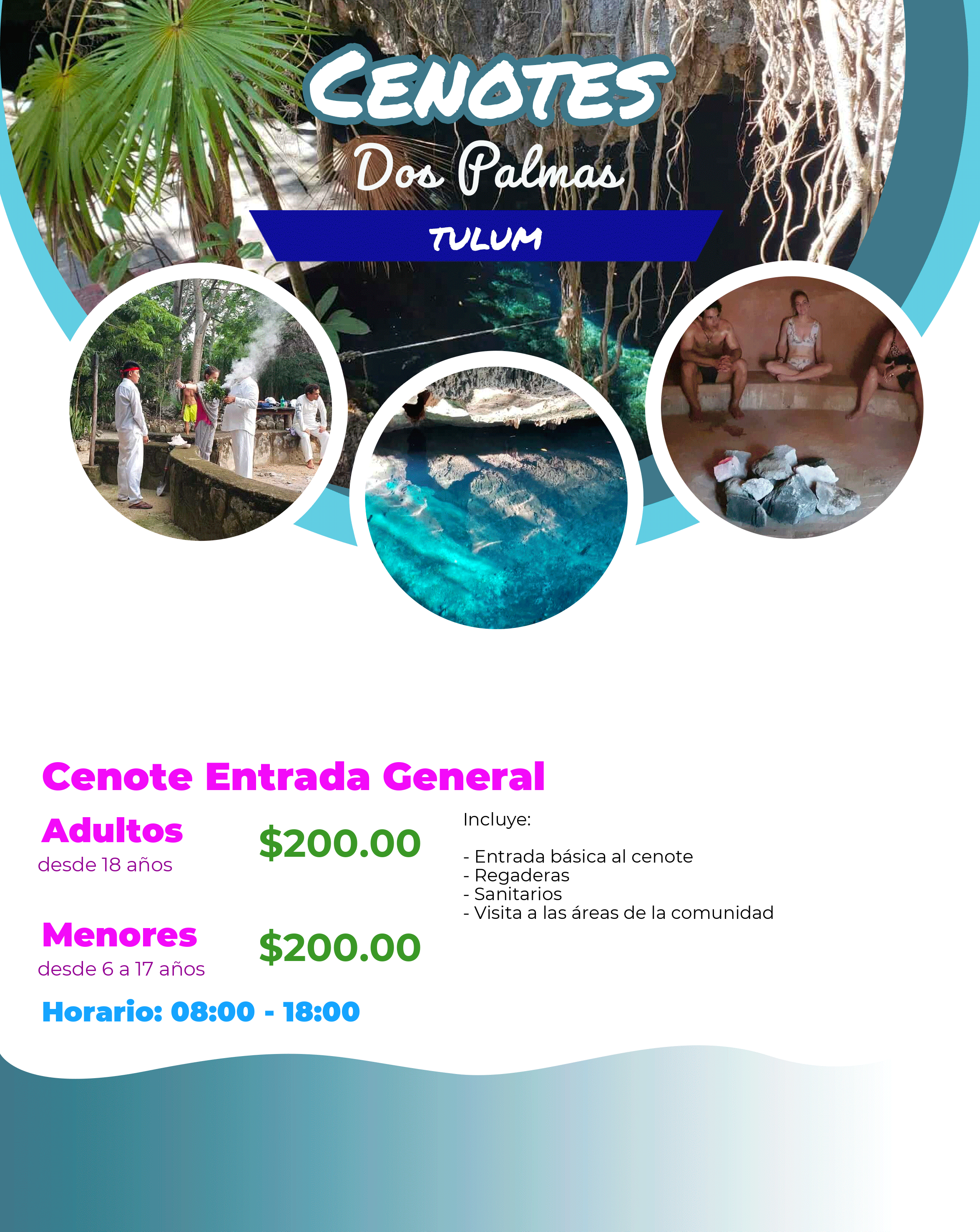 Entrada básica al cenote, Regaderas, Sanitarios, Visita a las áreas de la comunidad.