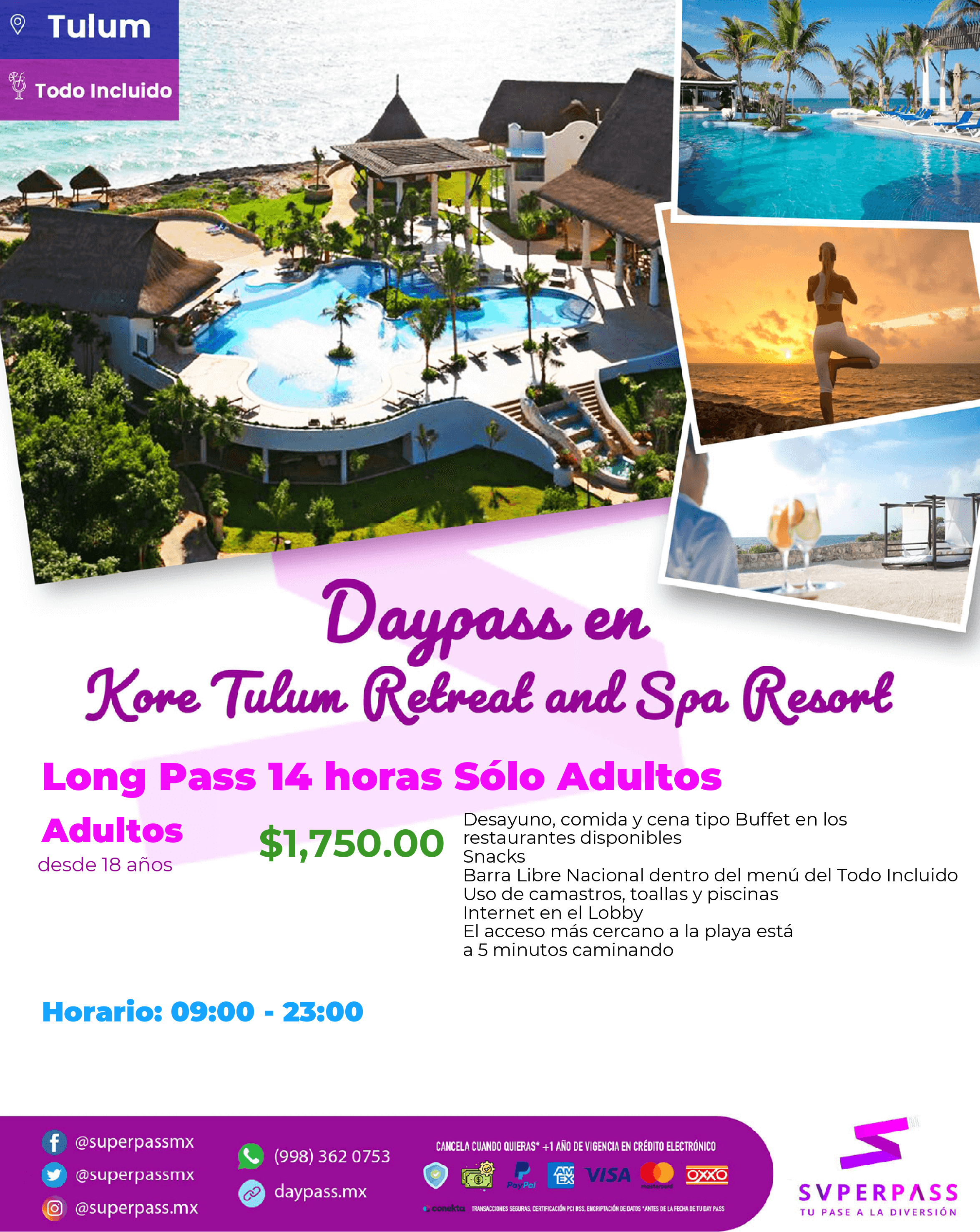- El daypass NO incluye : Habitación, Spa, alimentos y bebidas que no están dentro del plan Todo Incluido