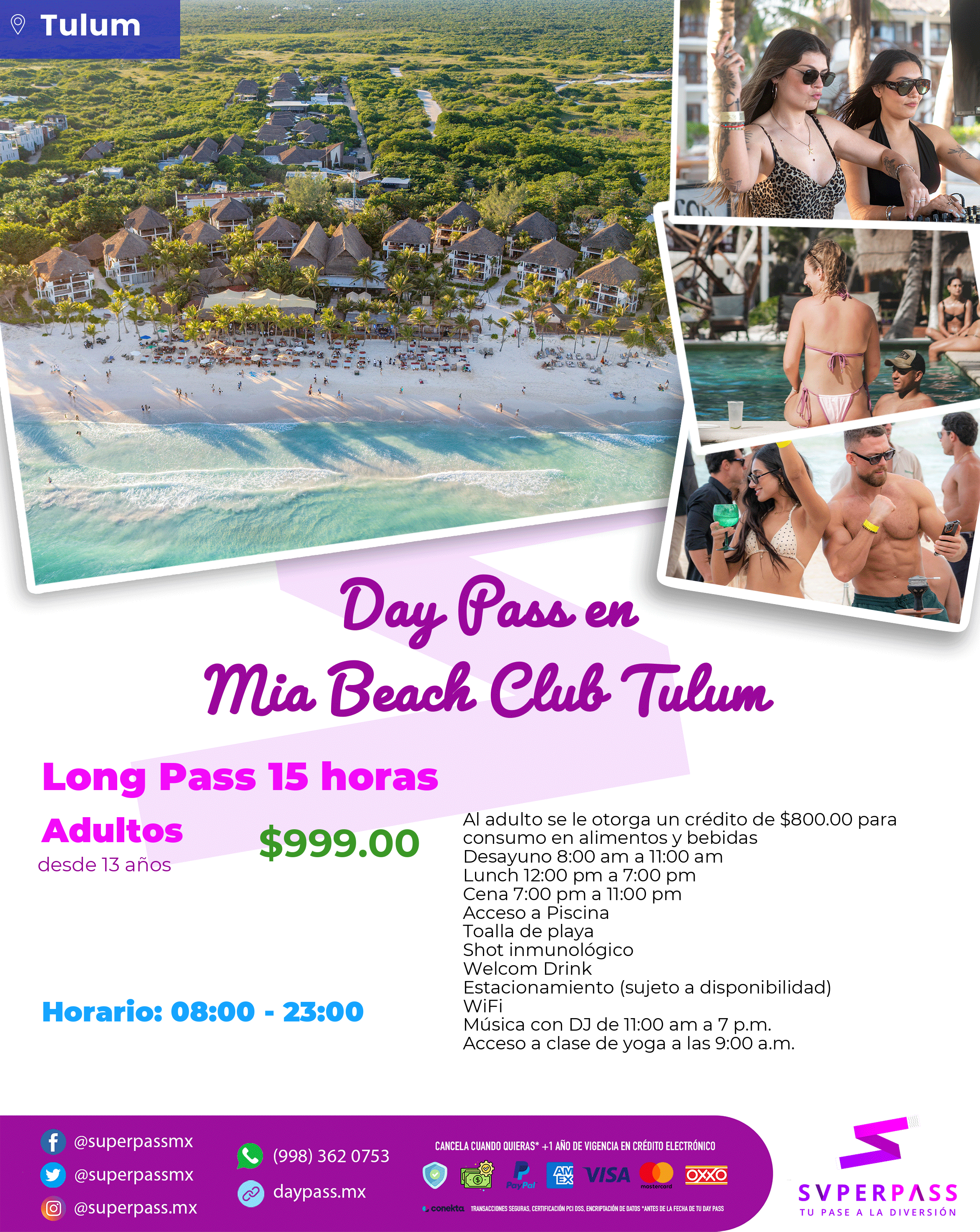 - Horario del daypass: 08:00 - 23:00