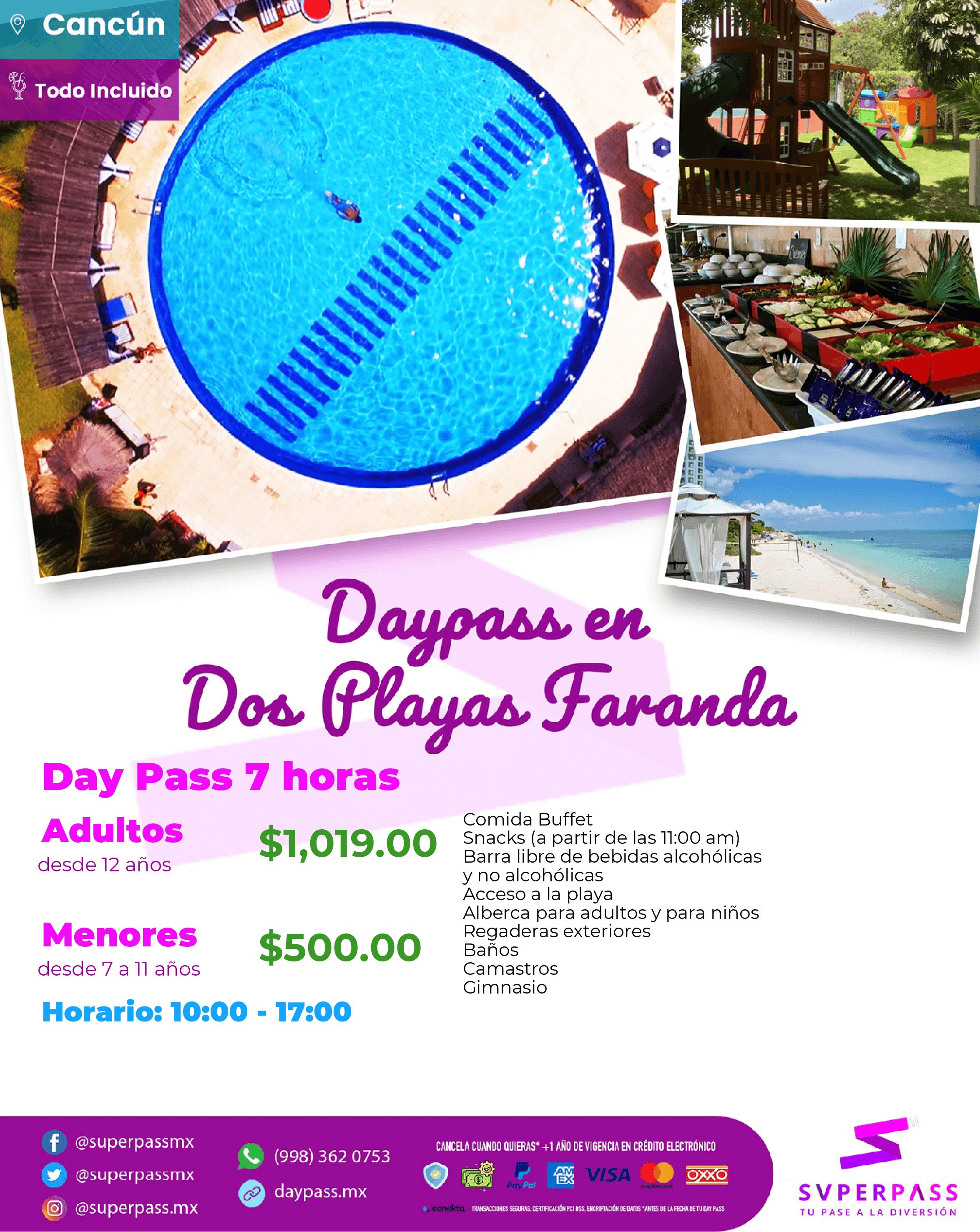 - The Daypass does NOT include : breakfast,massages, romantic dinners, tours, lodging