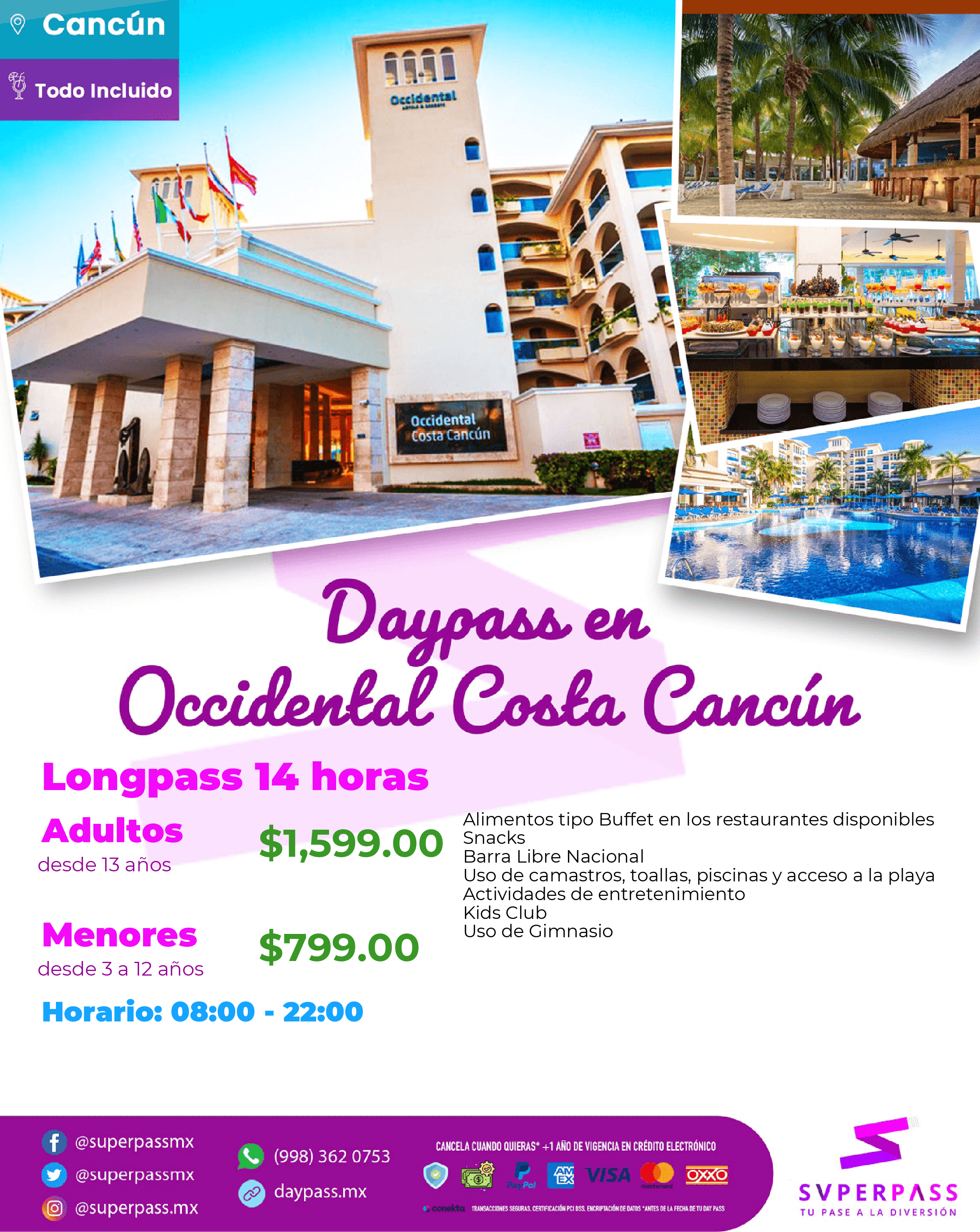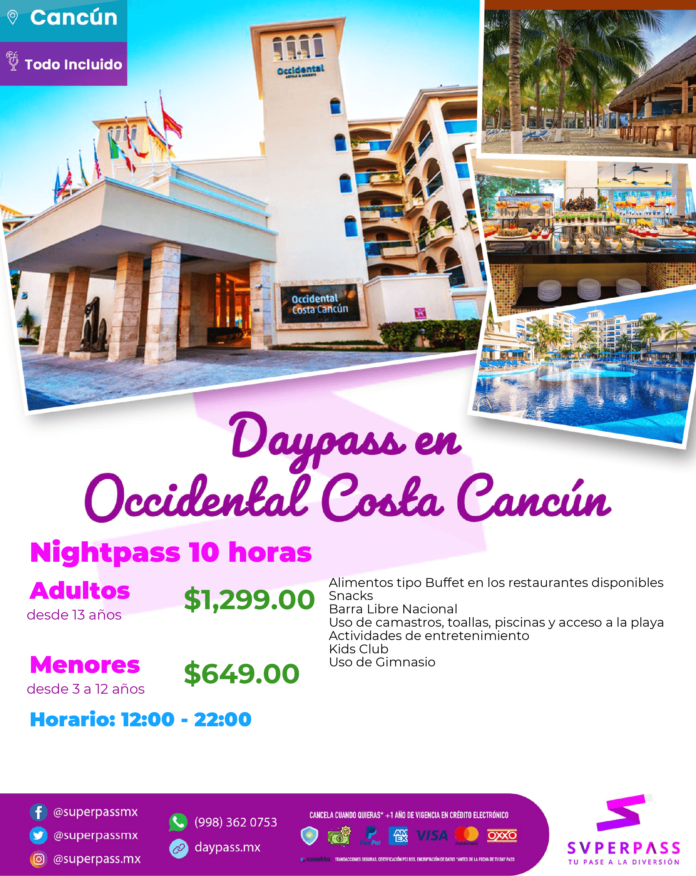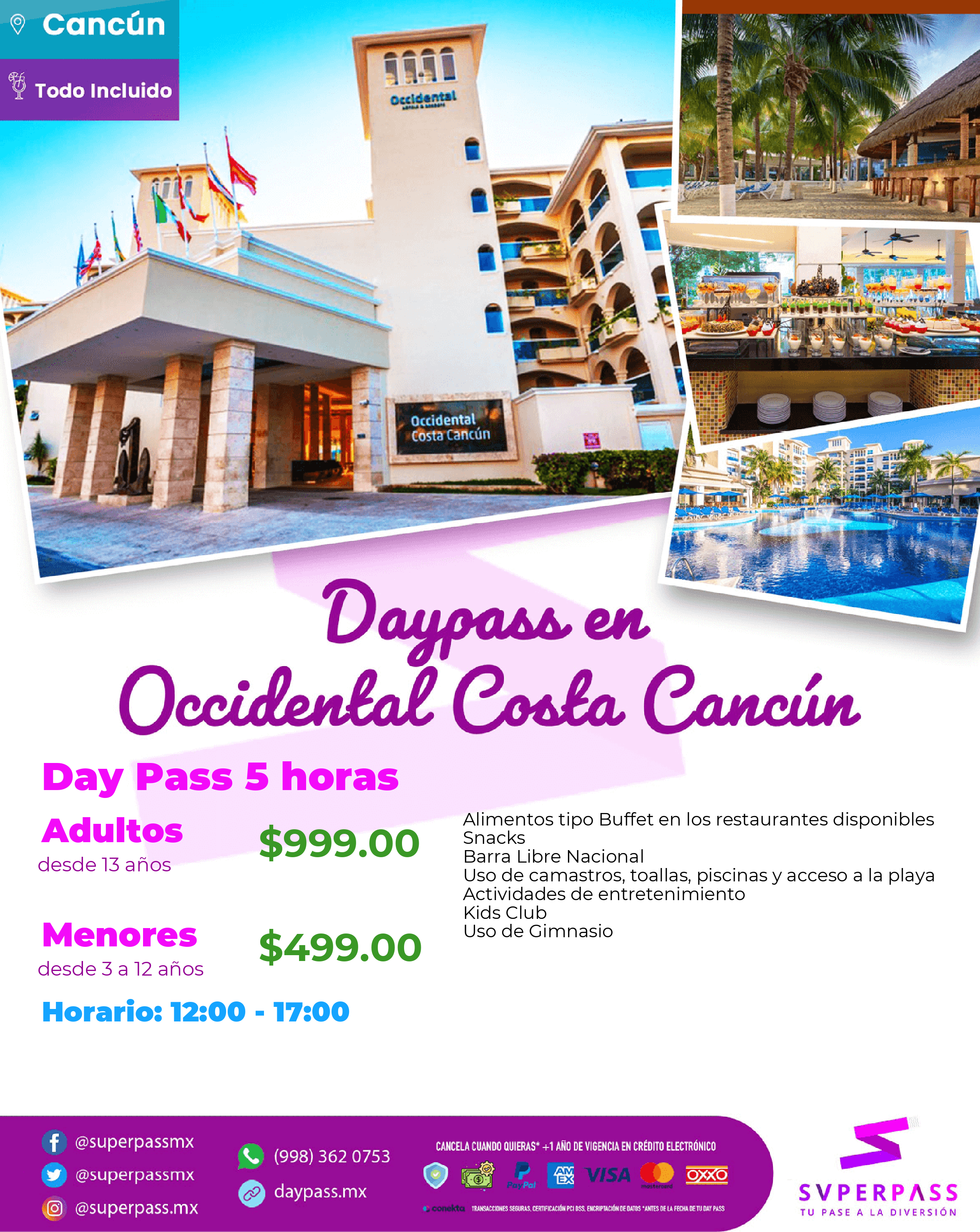 - The Daypass does NOT include : Restrictions according to the schedules and restaurants available lodging.