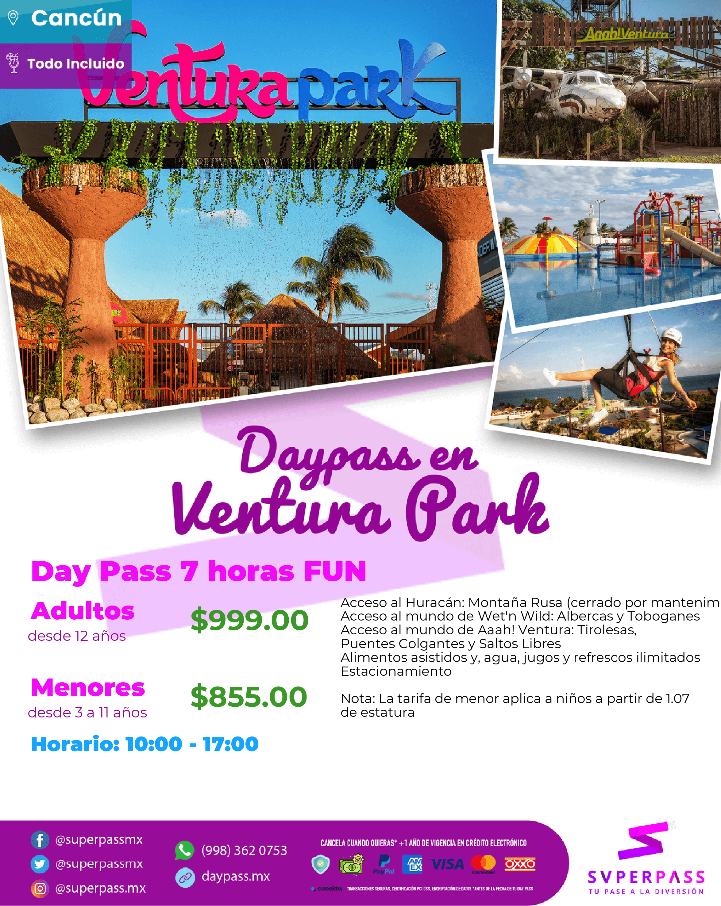 - The Daypass does NOT include : Lockers, Towels, Inflatable Tires, Icebox, Chamobarra