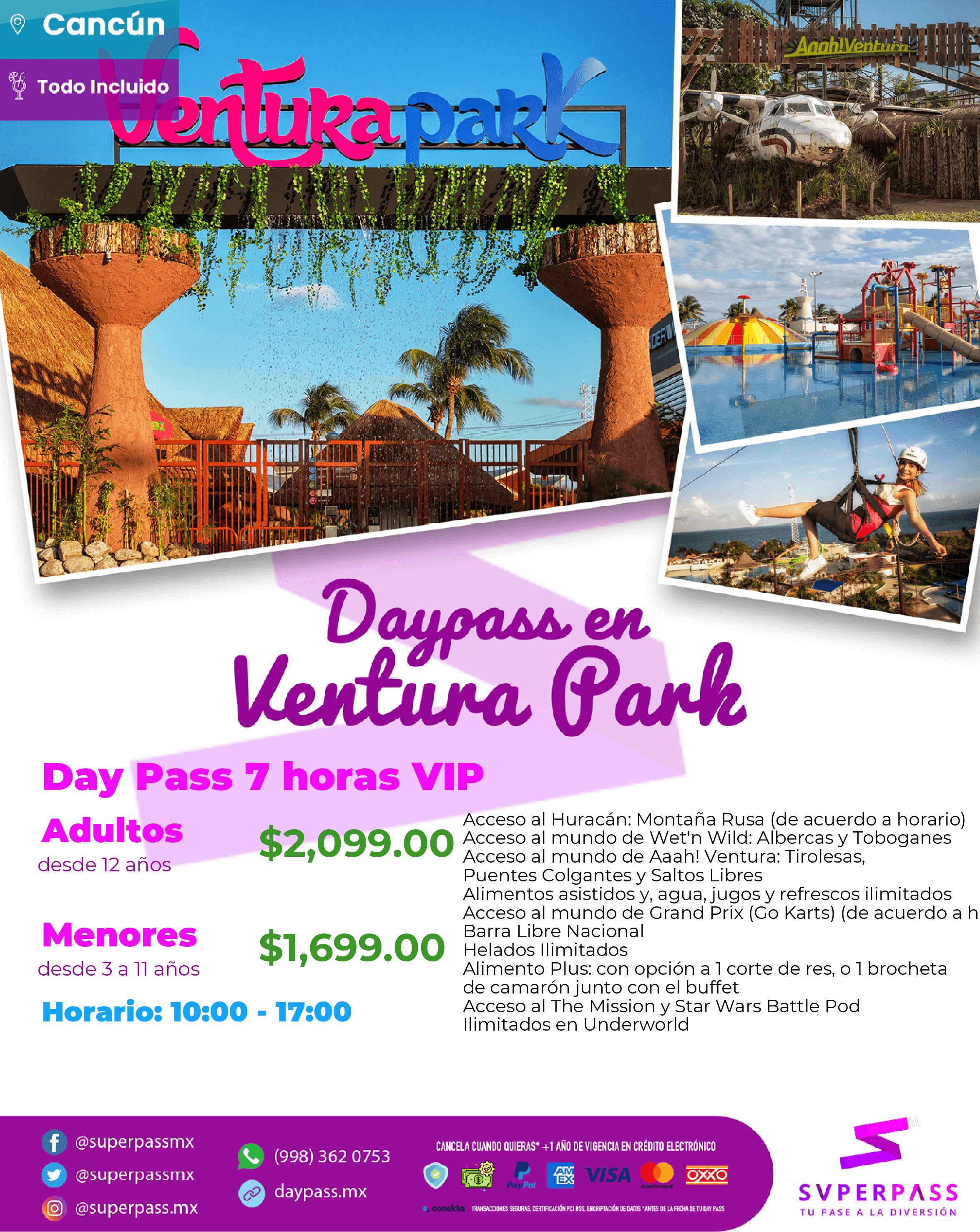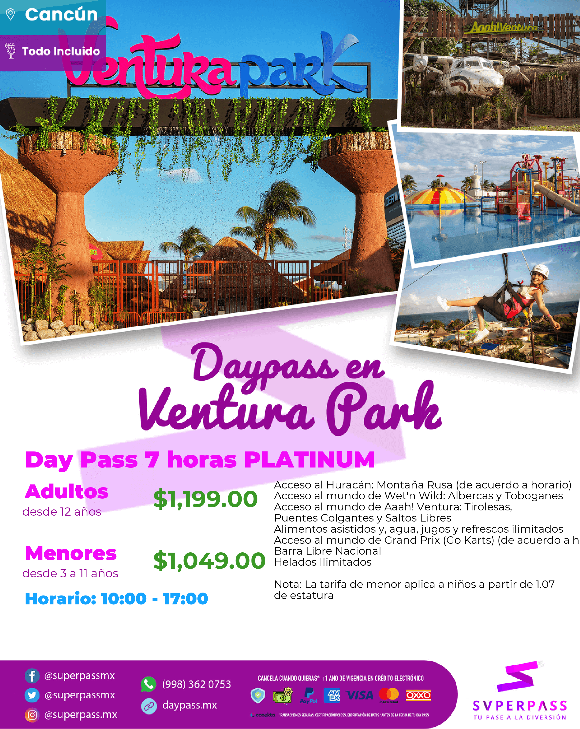 Adult (From 12years old )Price : $2,099.00 MXNChild (From 3years old / from 11 years old )Price : $1,699.00 MXNInfant (From 0years old / from 2 years old )Price : FREE