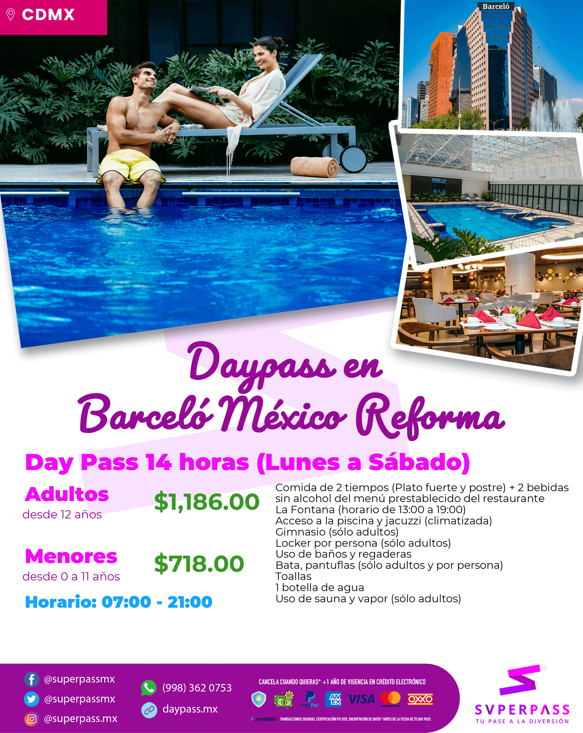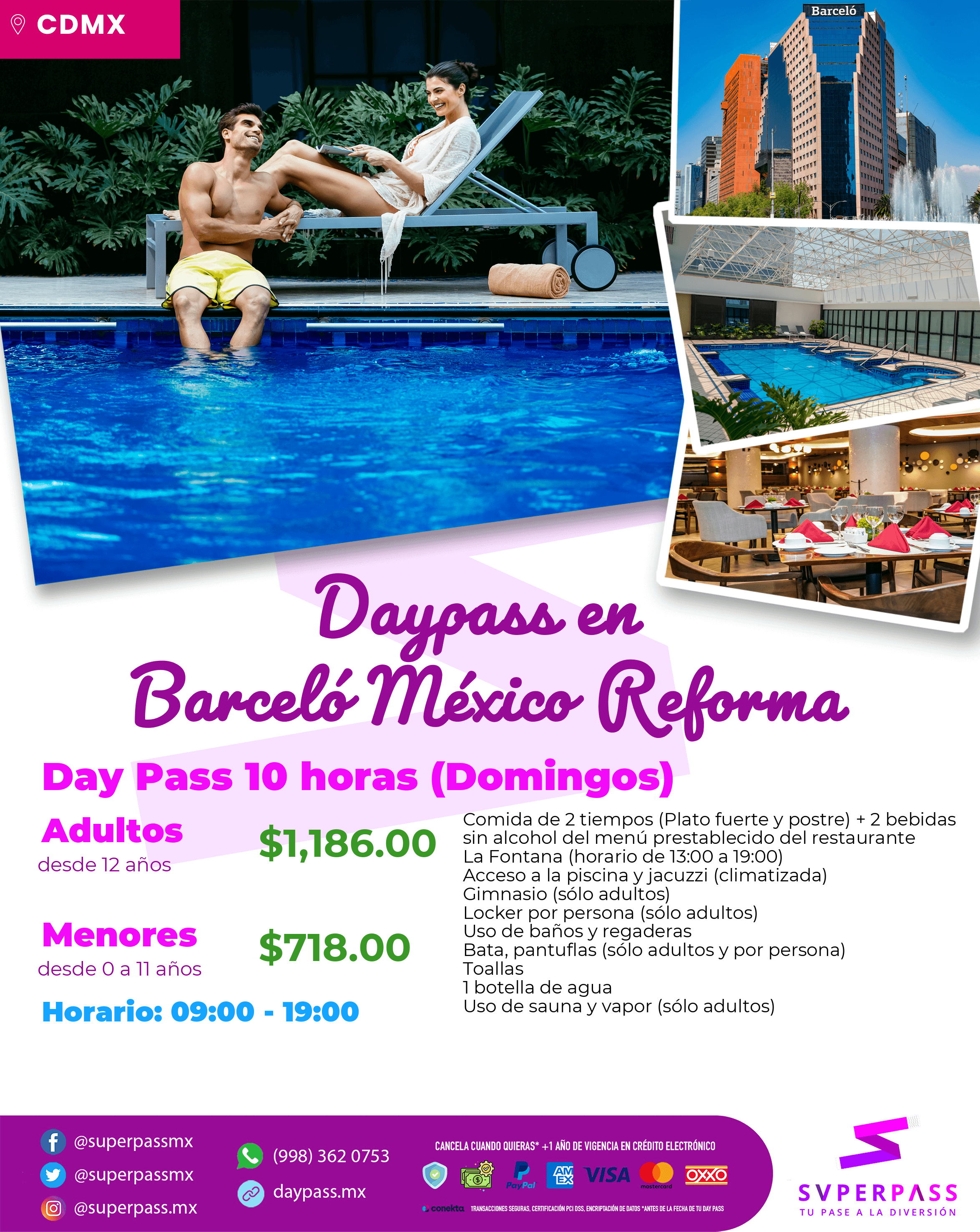 - The Daypass does NOT include : Alcoholic beverages, rooms, food cannot be consumed in the pool and gym