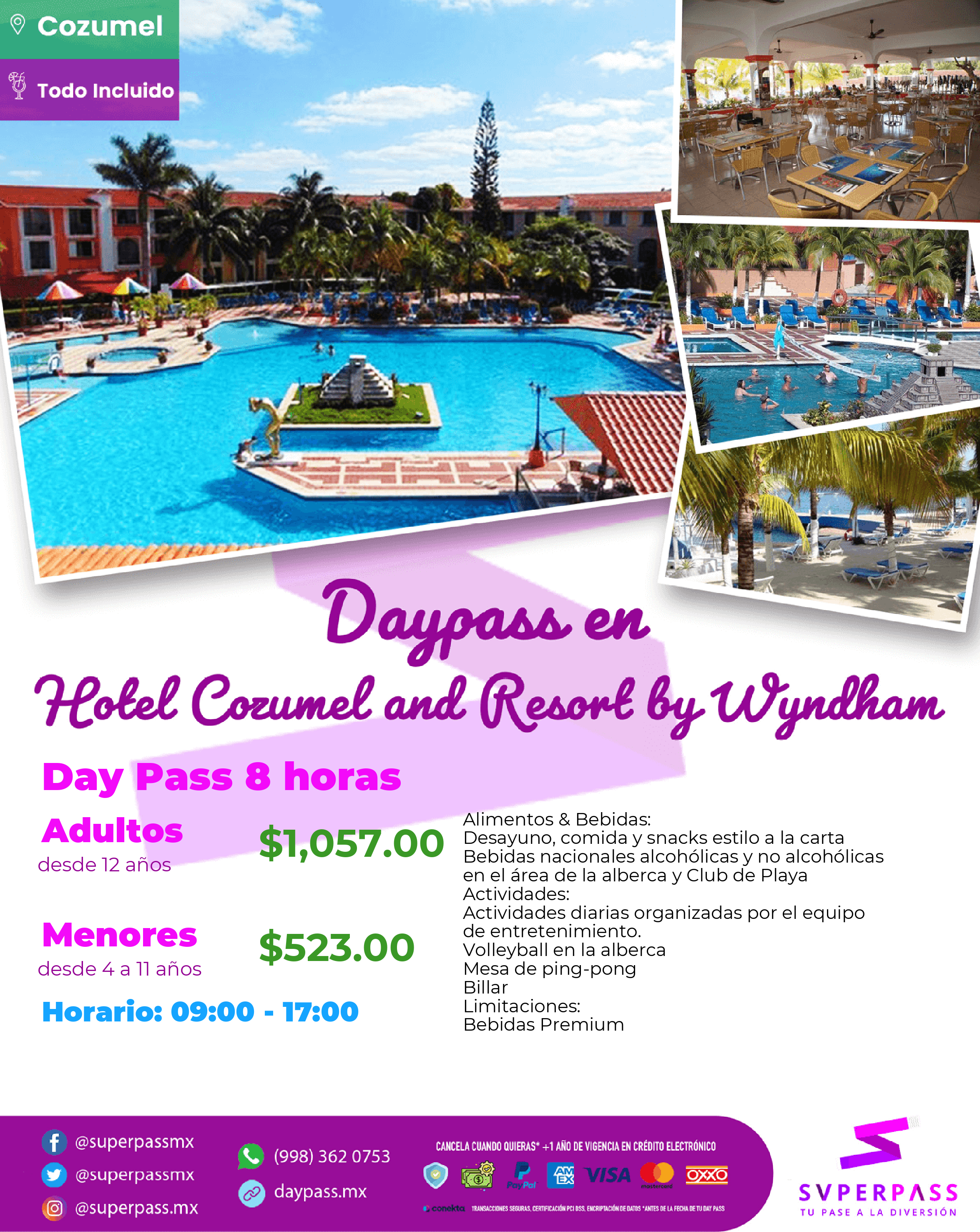 - The Daypass does NOT include : Toallas y equipo de snorkel