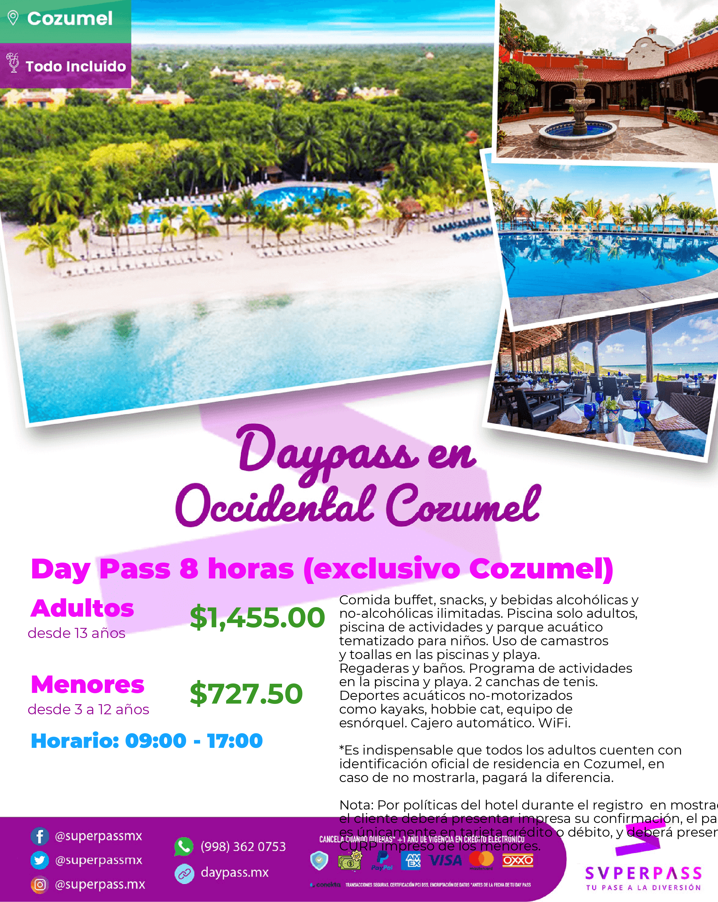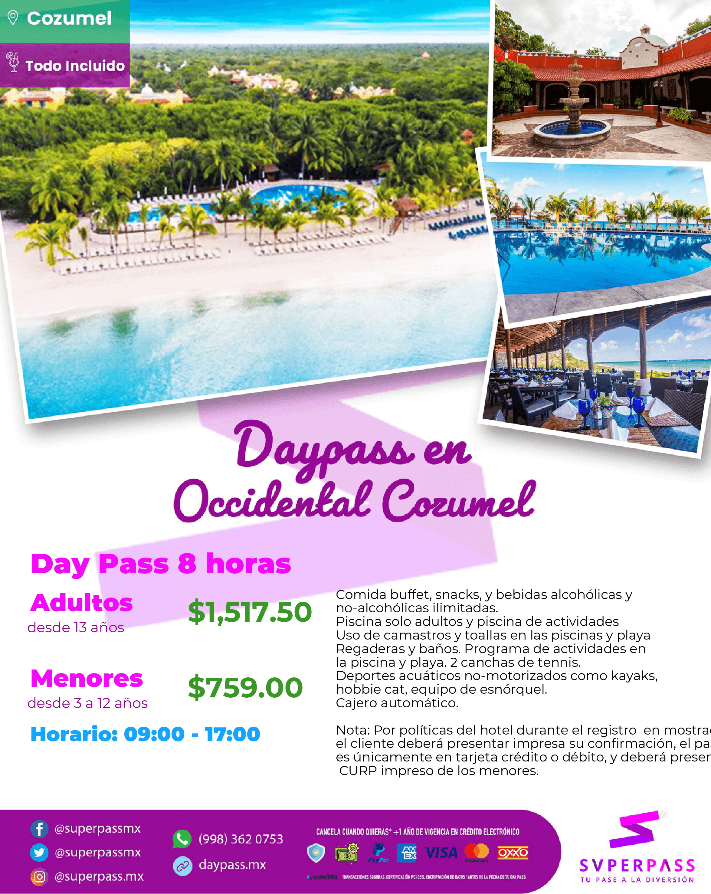 Note: Due to hotel policy, guests must present a printed confirmation upon check-in at the counter. Payment is by credit or debit card only. Minors must also present a printed CURP for the minors.