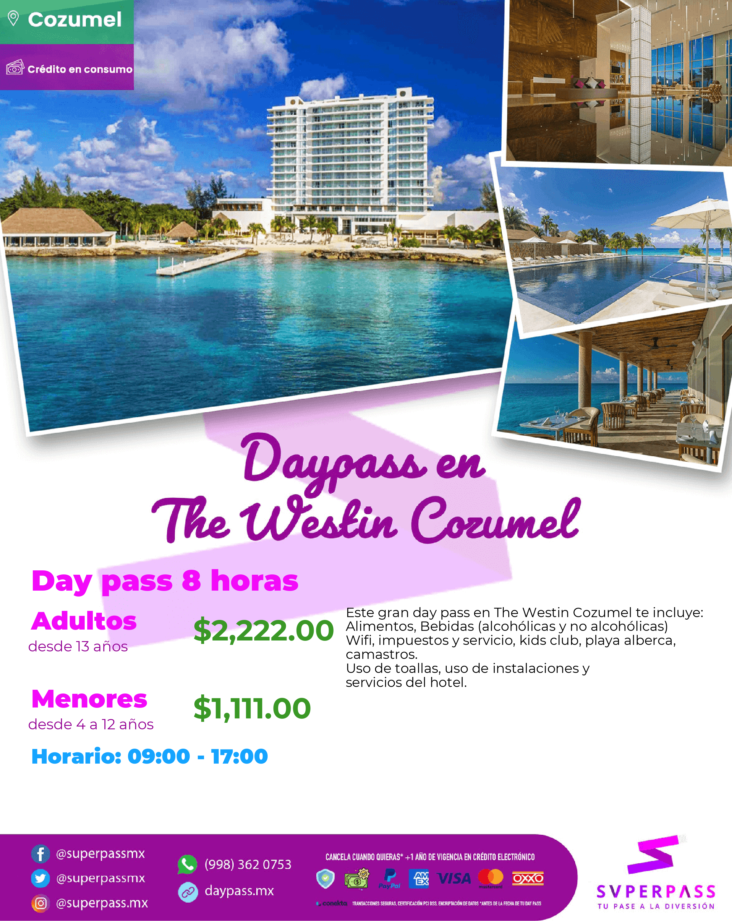 This great day pass in The Westin Cozumel includes: