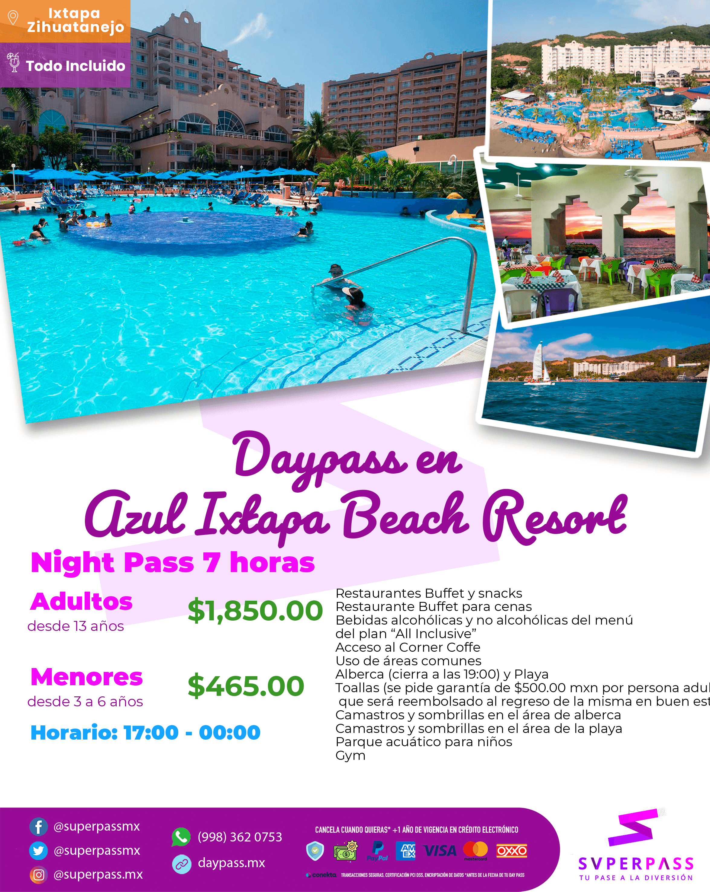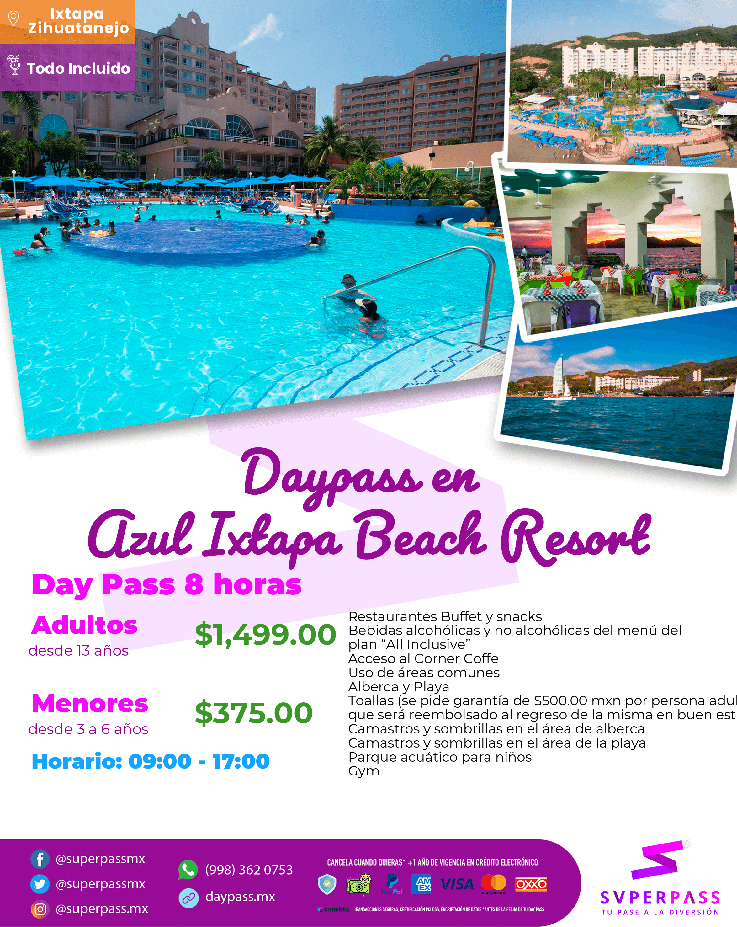 - The Daypass does NOT include : Room, tours, specialty restaurants, Dog Friendly with additional charge