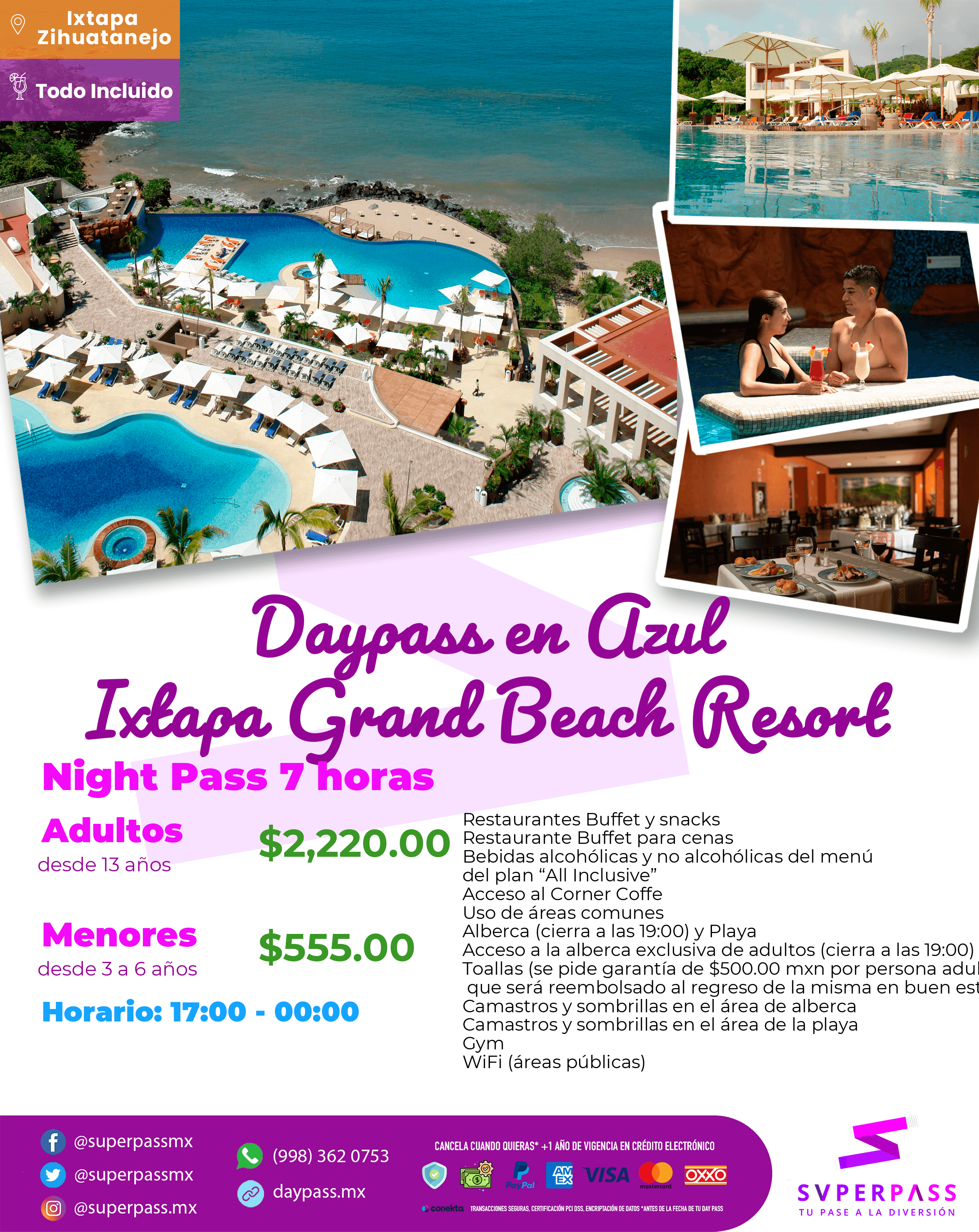 - The Daypass does NOT include : Room, tours, specialty restaurants, Dog Friendly with additional charge