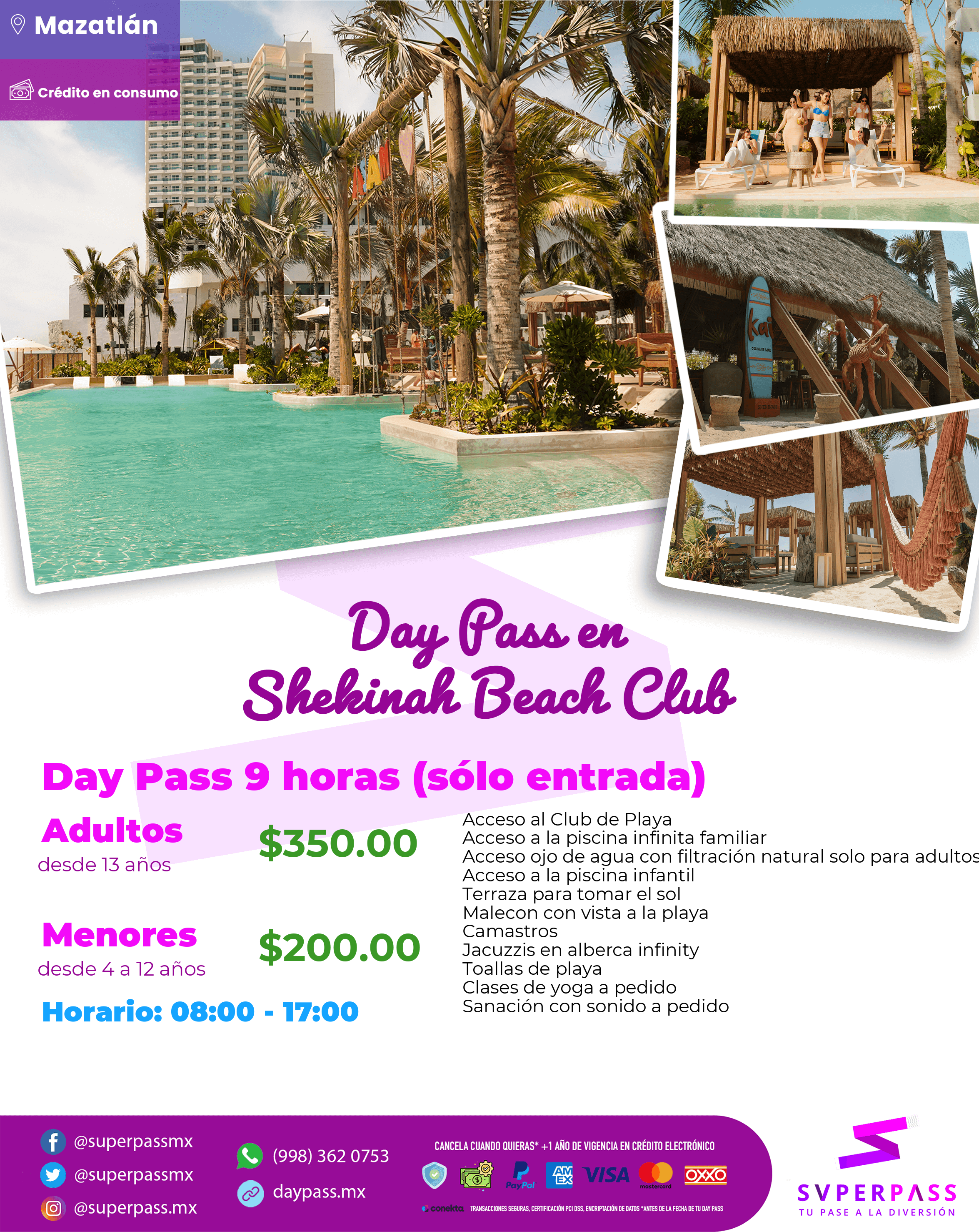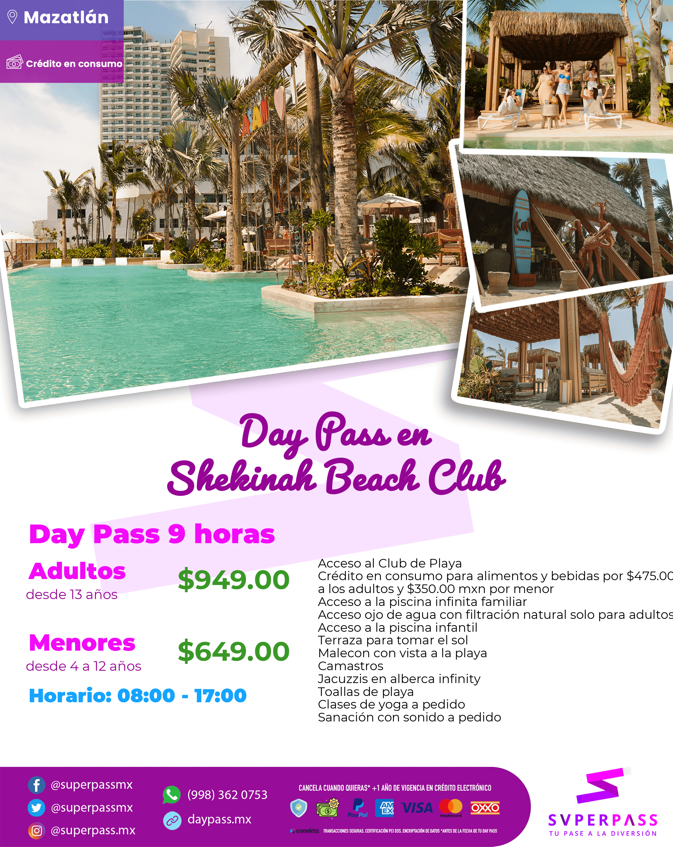 - The Daypass does NOT include : Massage, Private "Cavanas", Purification ritual in Temazcal, Tips and Transportation