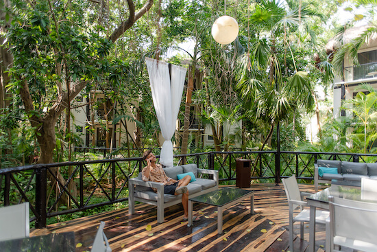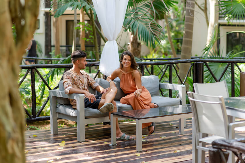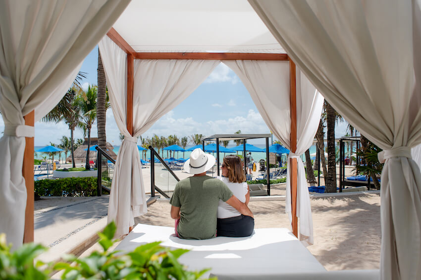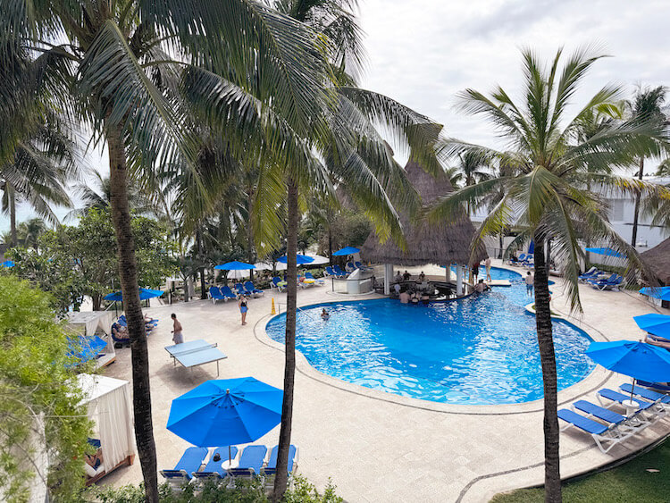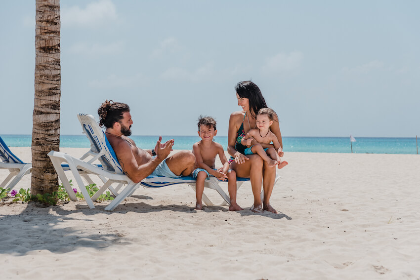 Lounge chairs at the pool and beach on a first-come, first-served basis