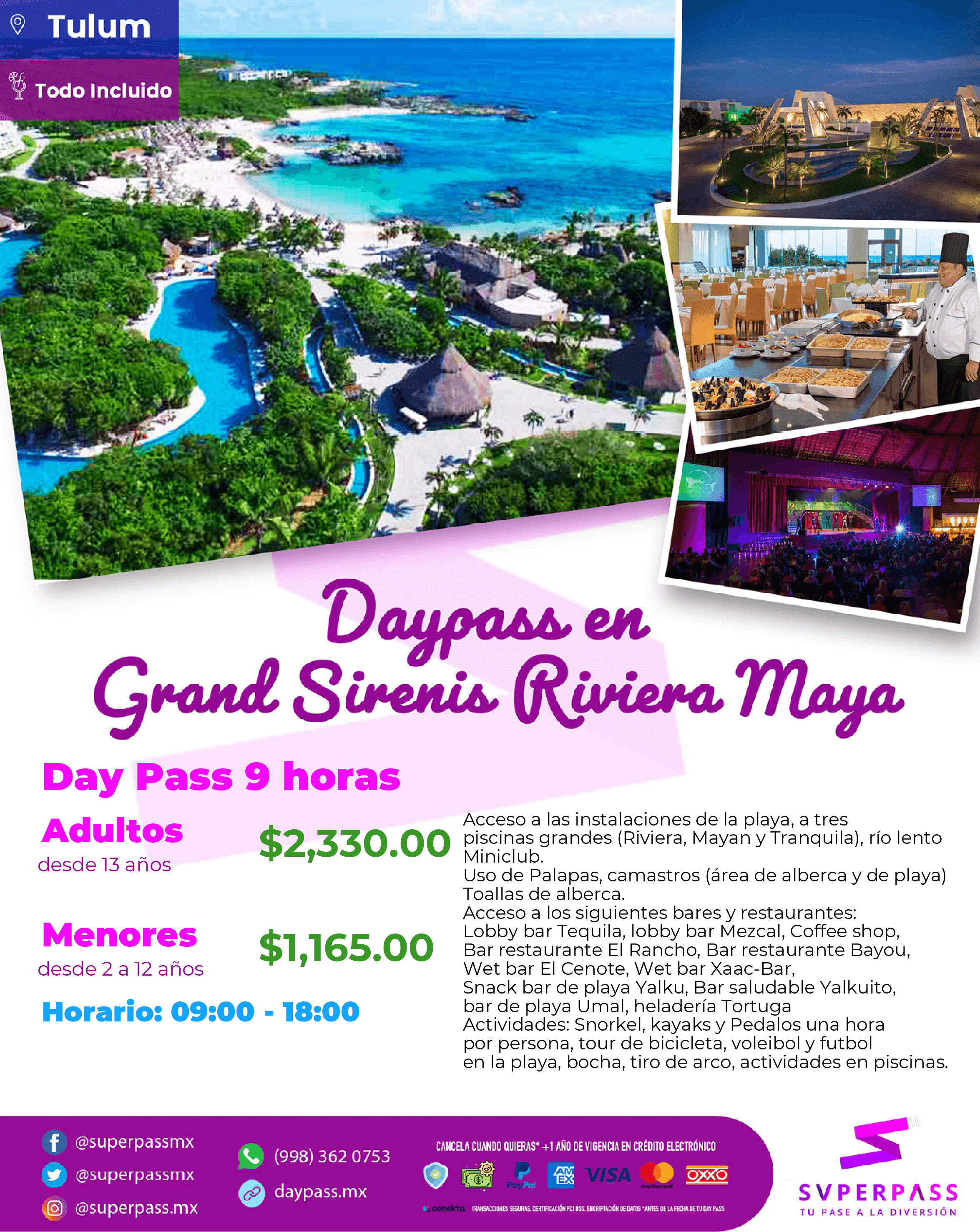 - Daypass schedule: 09:00 - 18:00