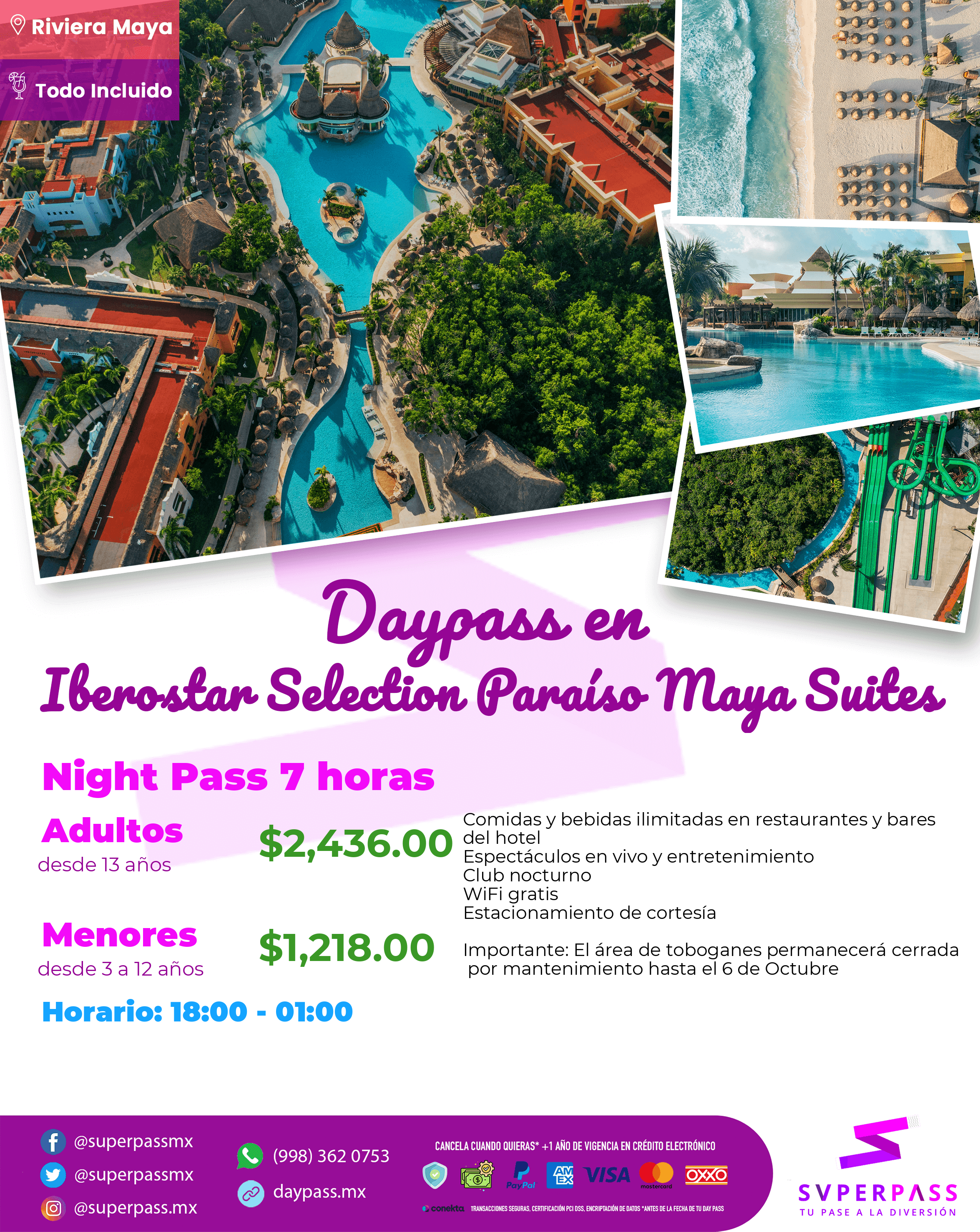 Adult (From 13years old )Price : $4,532.00 MXN $2,266.00 MXNChild (From 3years old / from 12 years old )Price : $2,266.00 MXN $1,133.00 MXNInfant (From 0years old / from 2 years old )Price : FREE