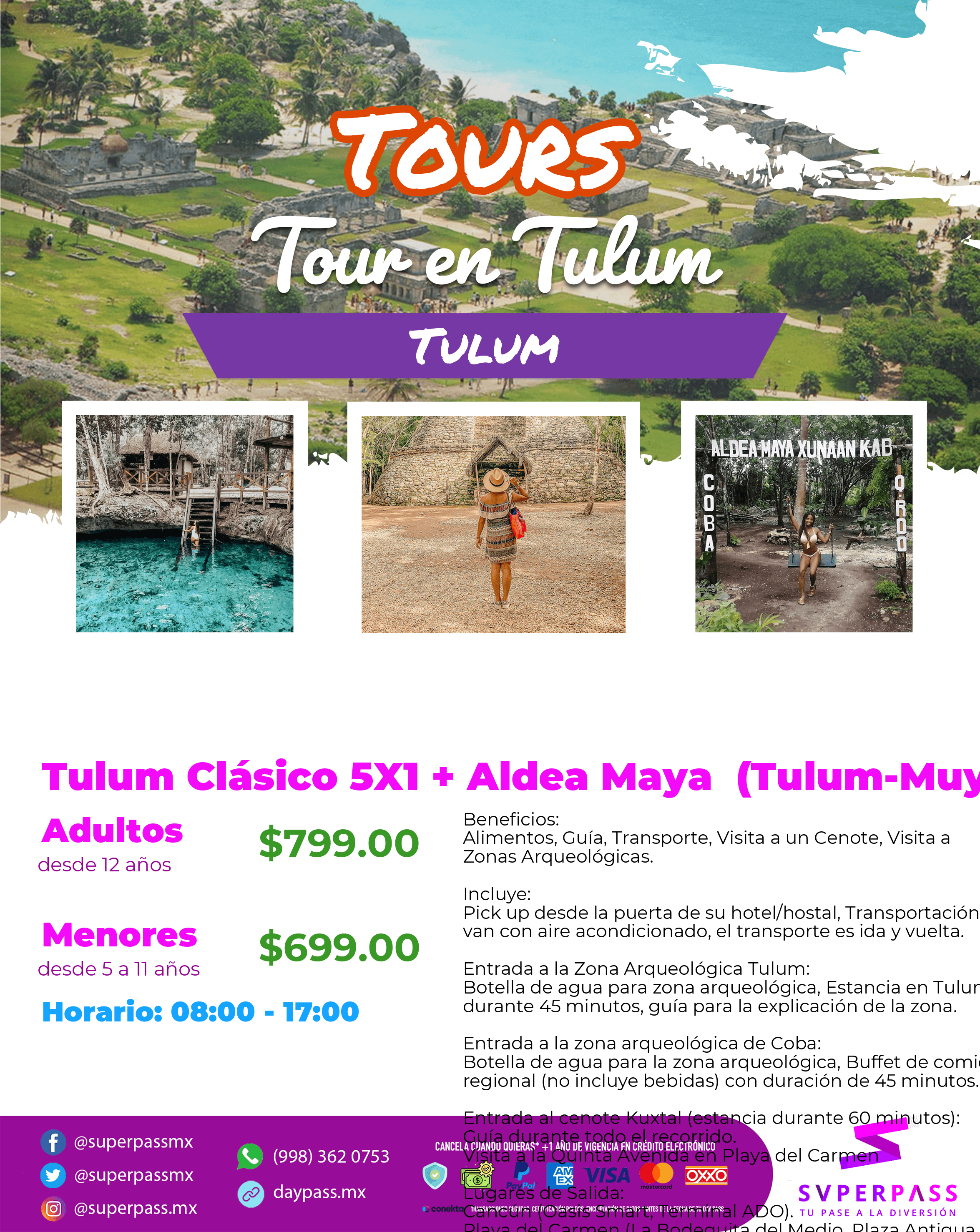 - The Daypass does NOT include : Waters on board the transportation unit. 1 Drink at the Buffet Lunch. Bicycle in Cobá. Box lunch on board the transportation unit.Does not include tax (Nationals $430.00 and Foreigners $635.00 mxn per person)