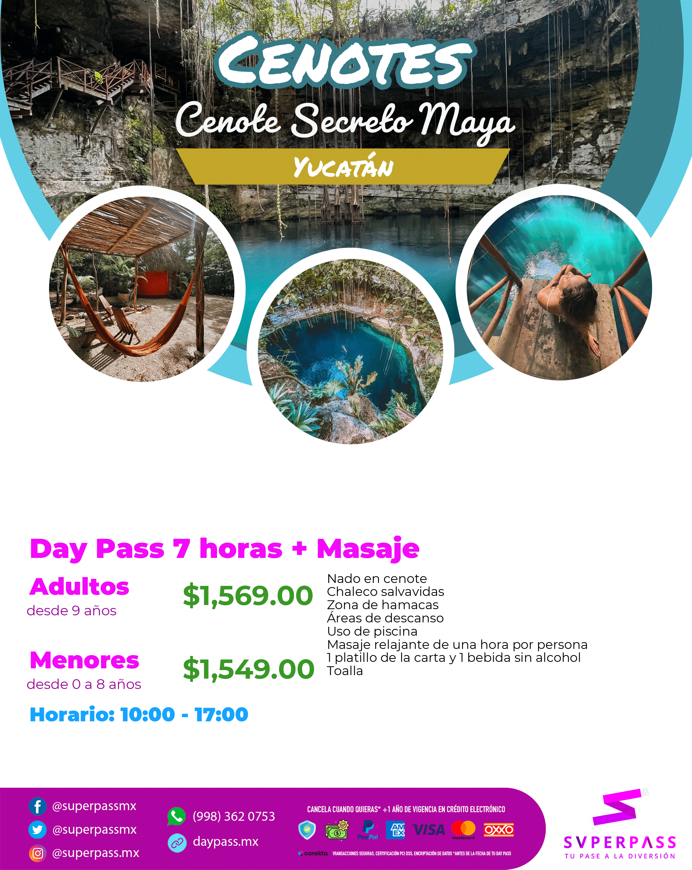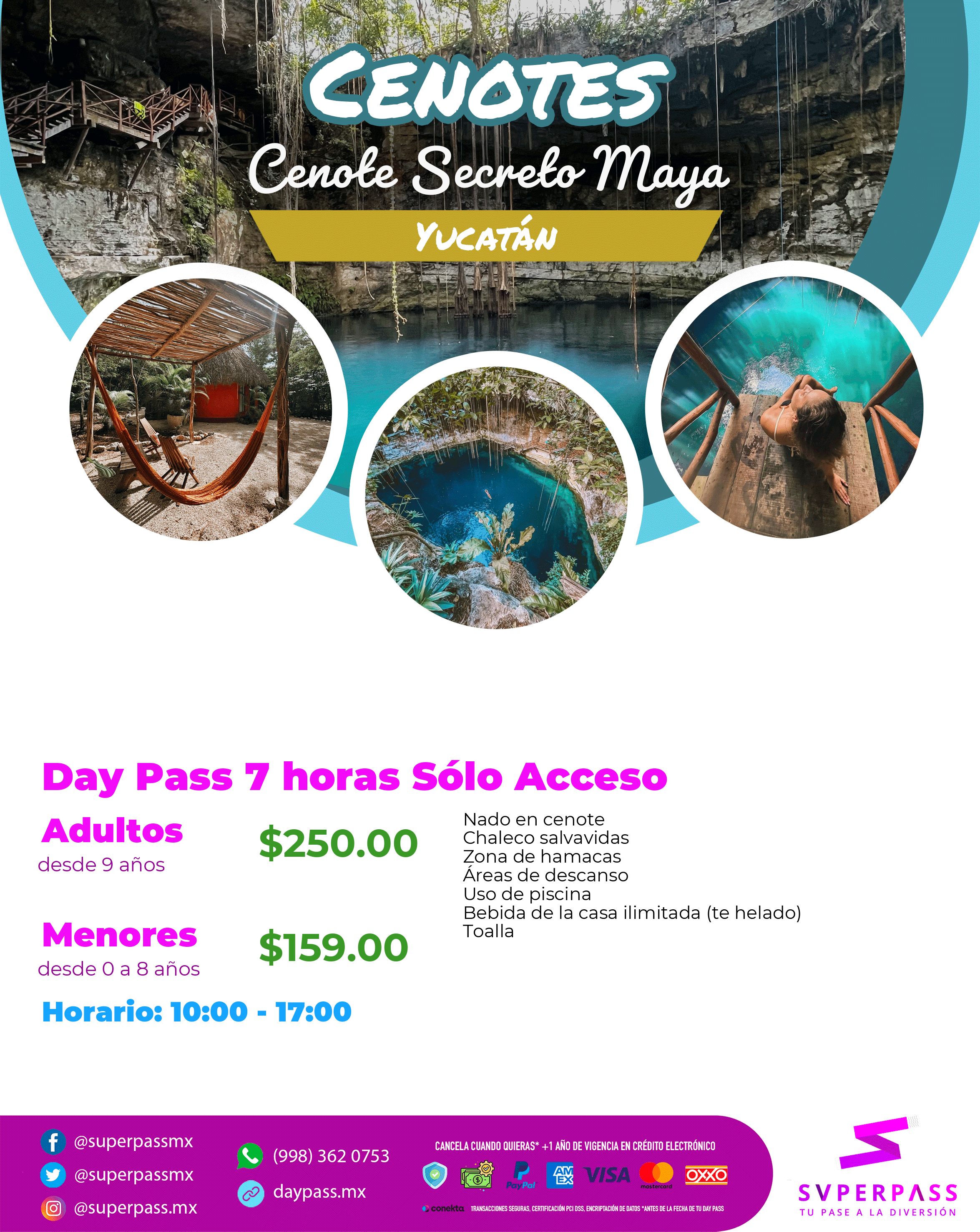 - Reembolso : In case of cancellation the Cenote offers 0 % refund