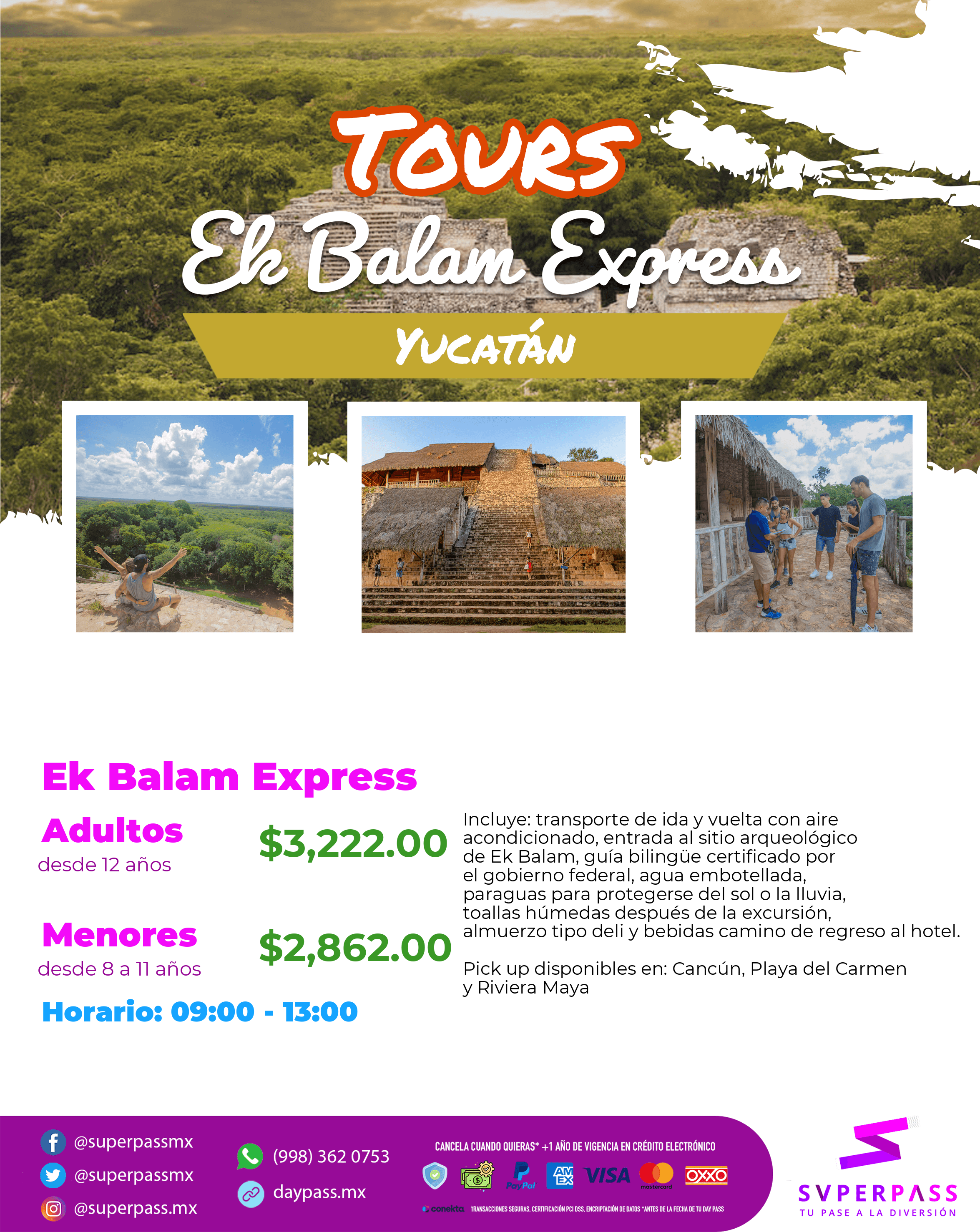 Pick up available in: Cancun, Playa del Carmen and Riviera Maya