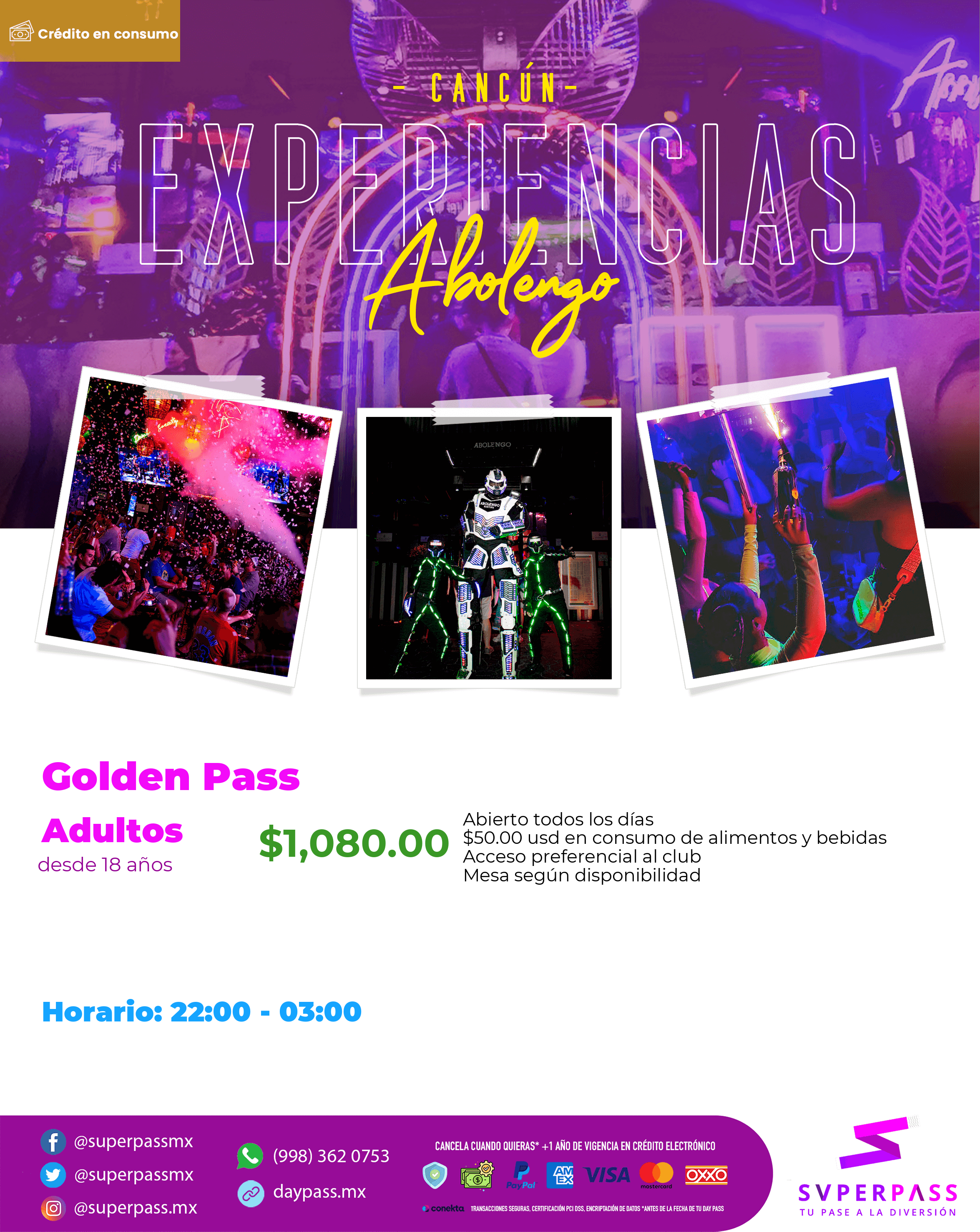 - Horario del daypass: 22:00 - 03:00